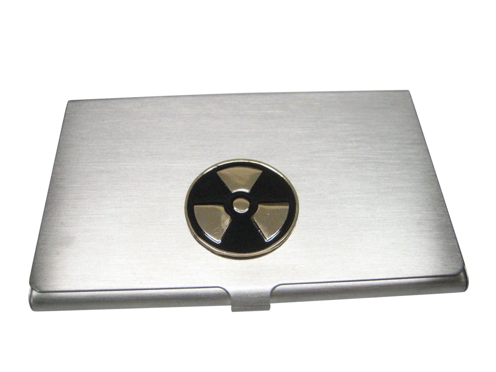 Black and Gold Toned Radioactive Symbol Business Card Holder