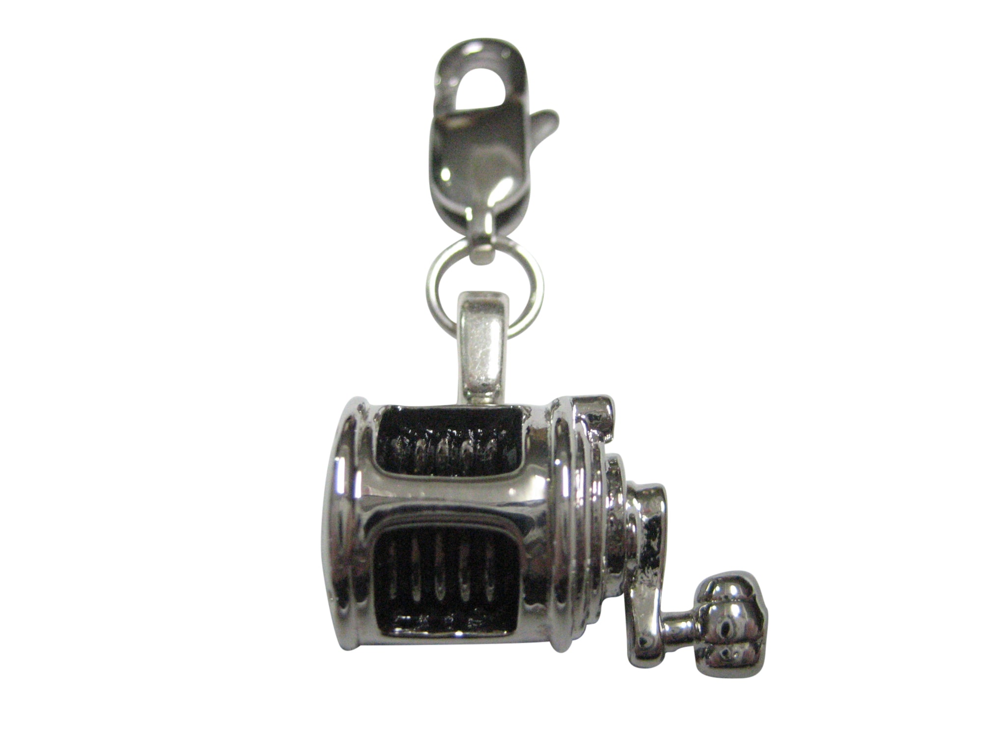 Black and Silver Toned Fishing Reel Fisherman Pendant Zipper Pull Charm