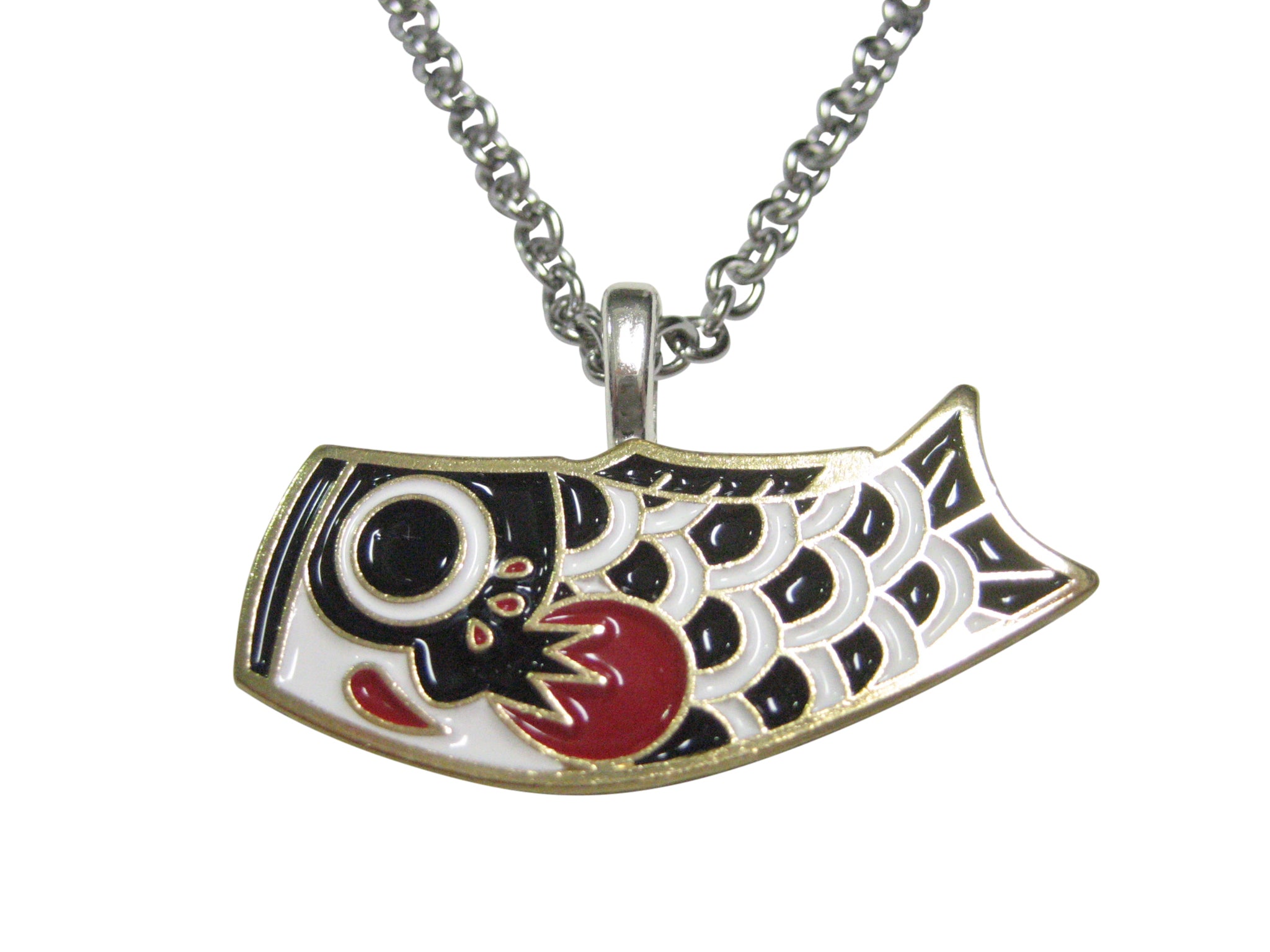 Black Toned Festival Koi Flag Koinobori Pendant Necklace