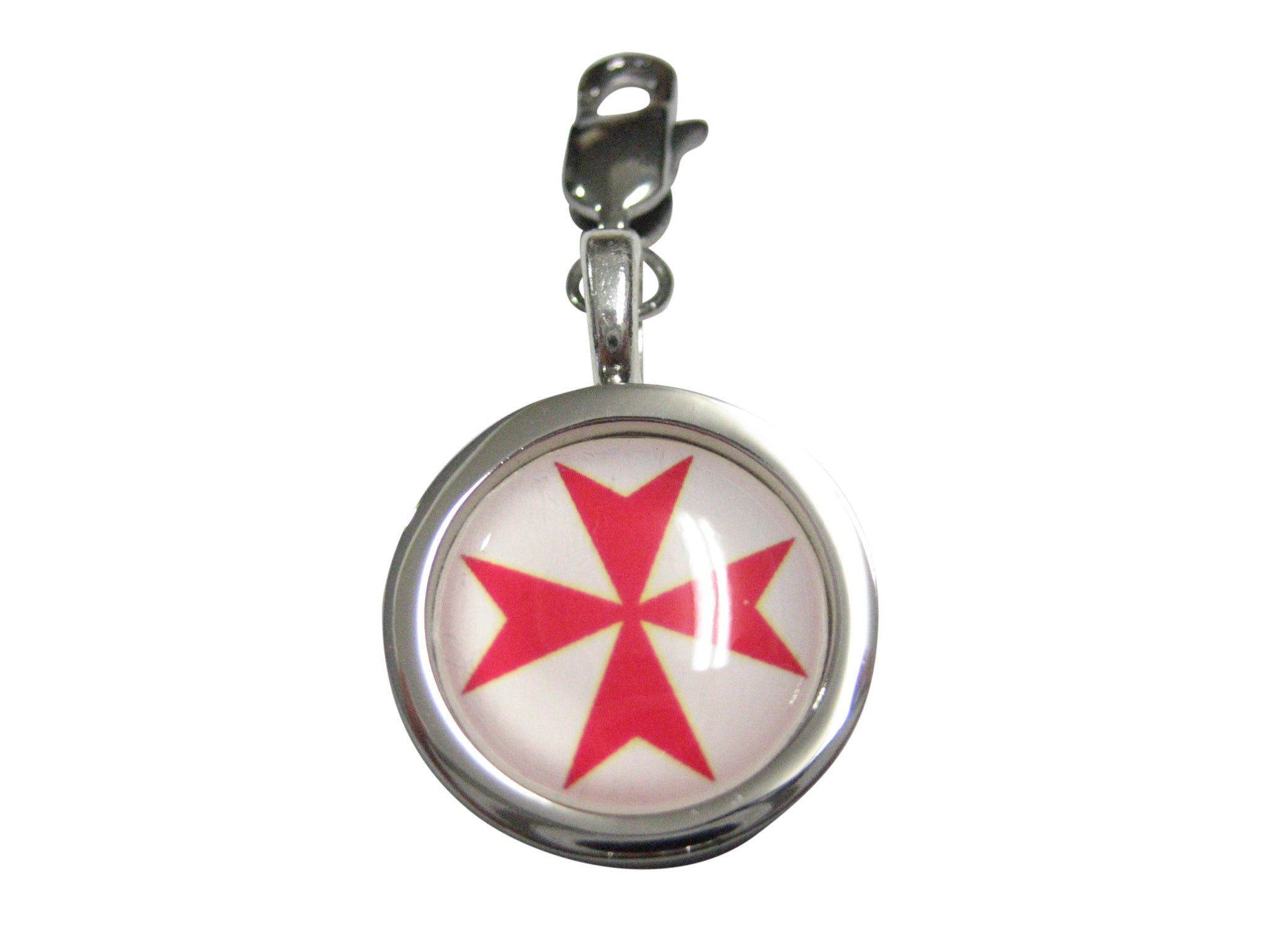 Bordered Red Maltese Cross Pendant Zipper Pull Charm