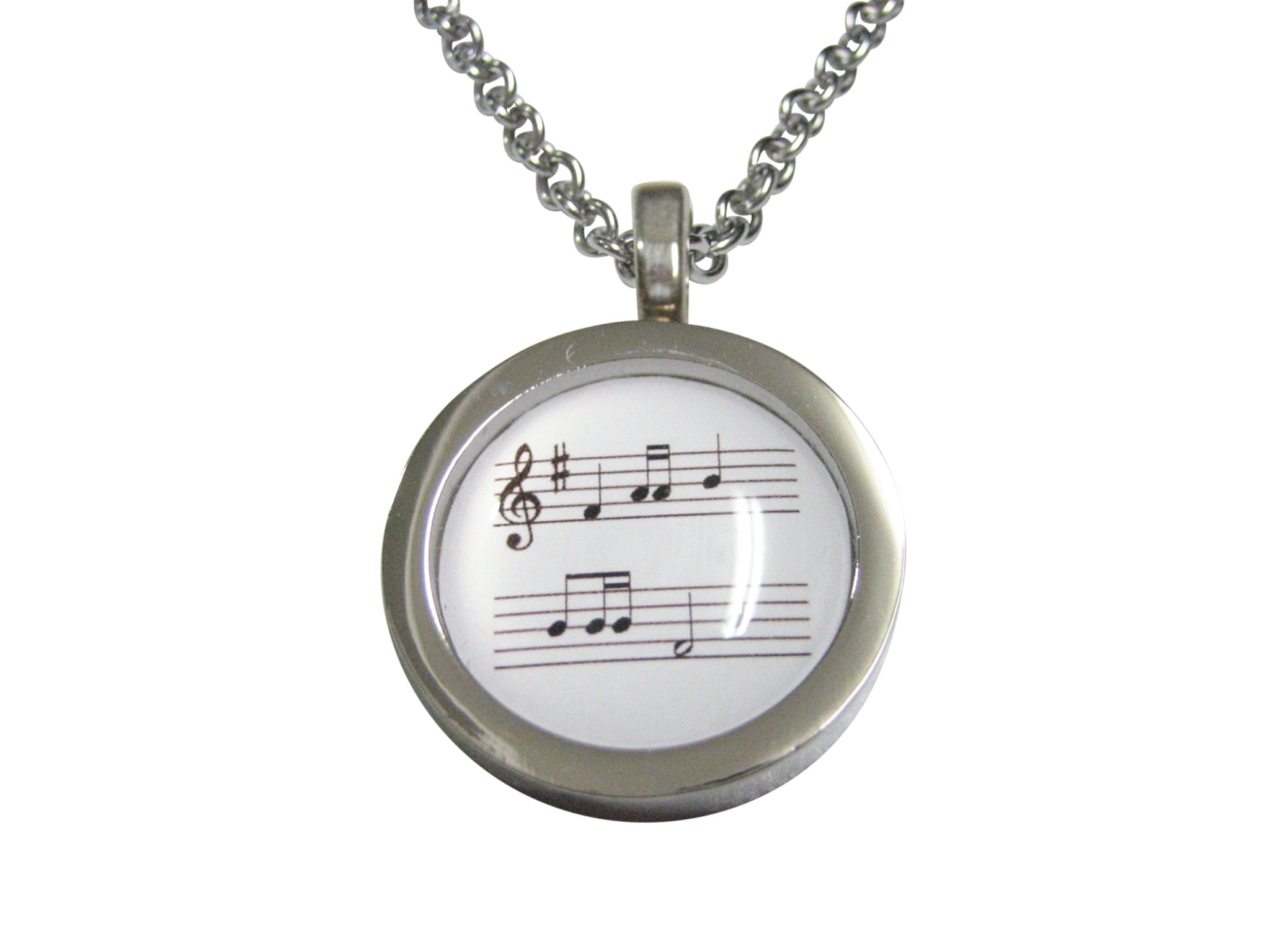 Bordered White Toned Circular Music Sheet Pendant Necklace