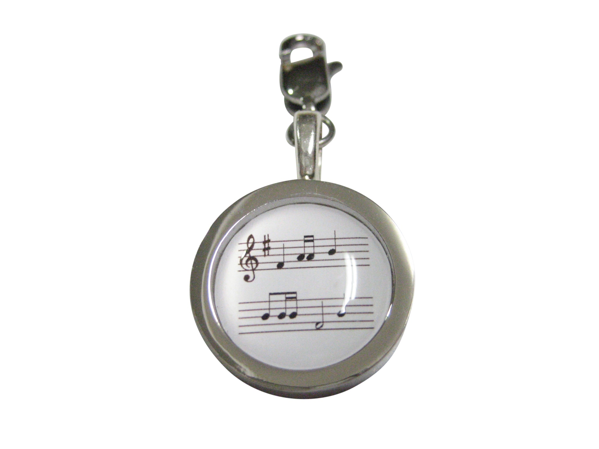 Bordered White Toned Circular Music Sheet Pendant Zipper Pull Charm