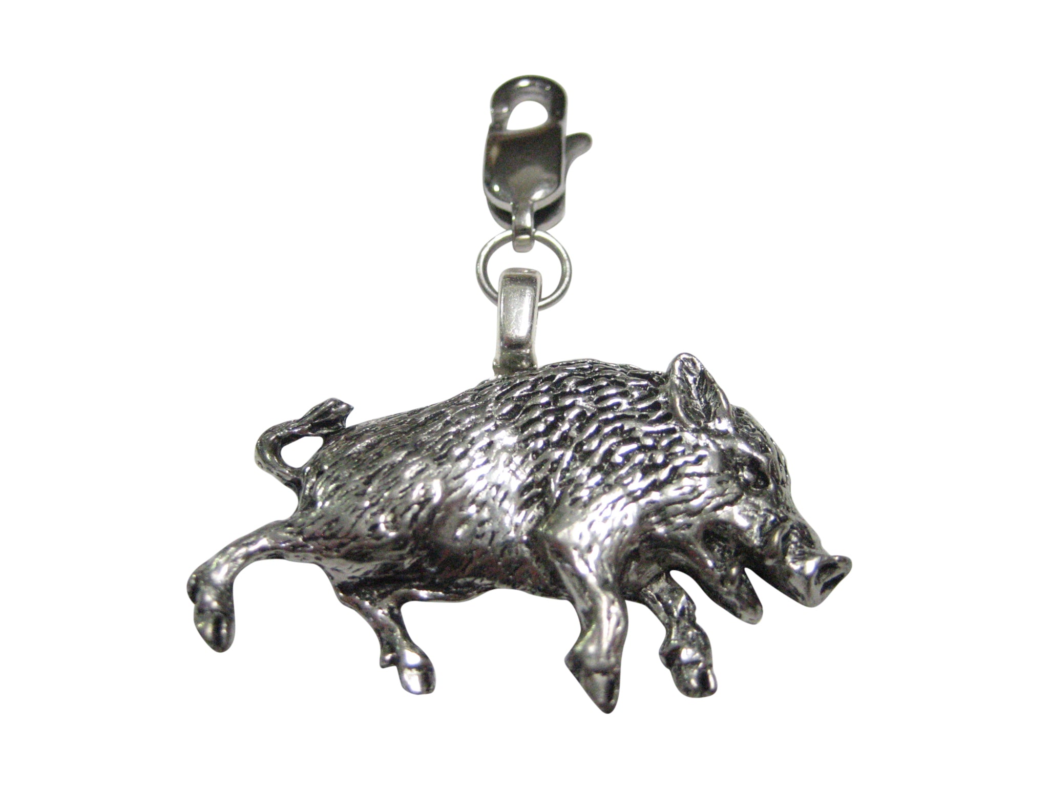 Charging Wild Boar Razorback Hog Pendant Zipper Pull Charm