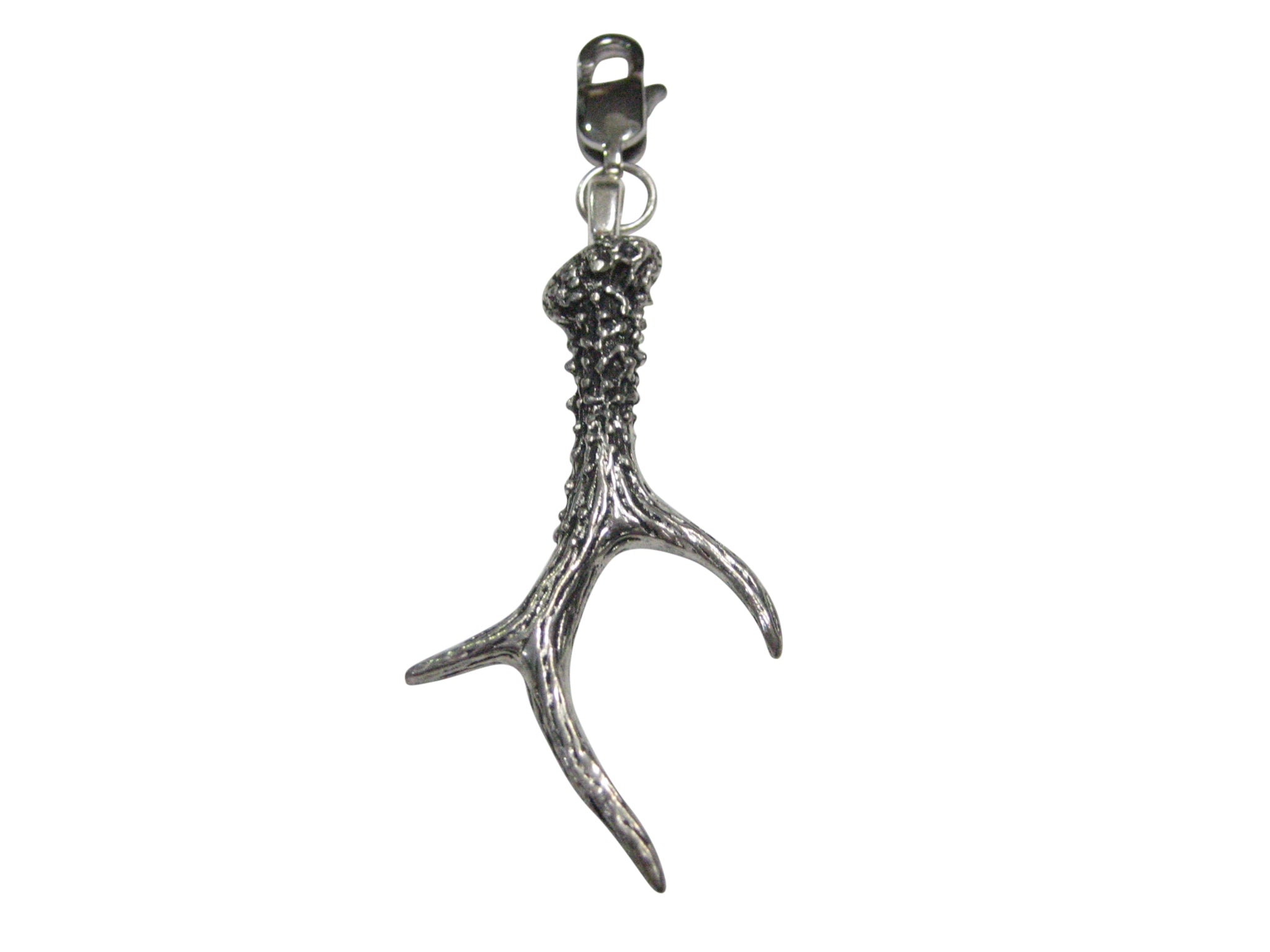 Detailed Single Deer Antler Pendant Zipper Pull Charm