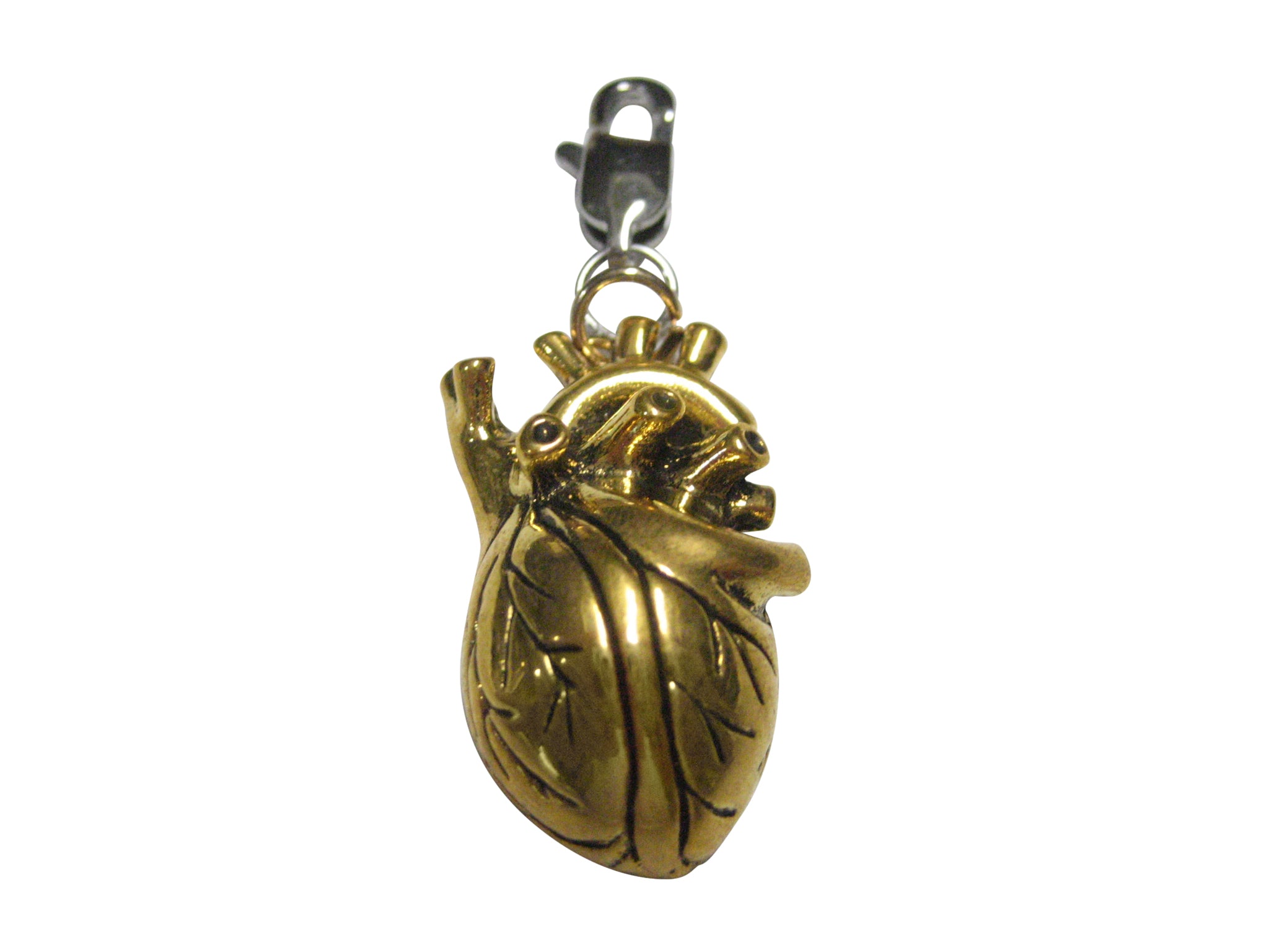 Gold and Black Toned Large Anatomical Heart Pendant Zipper Pull Charm