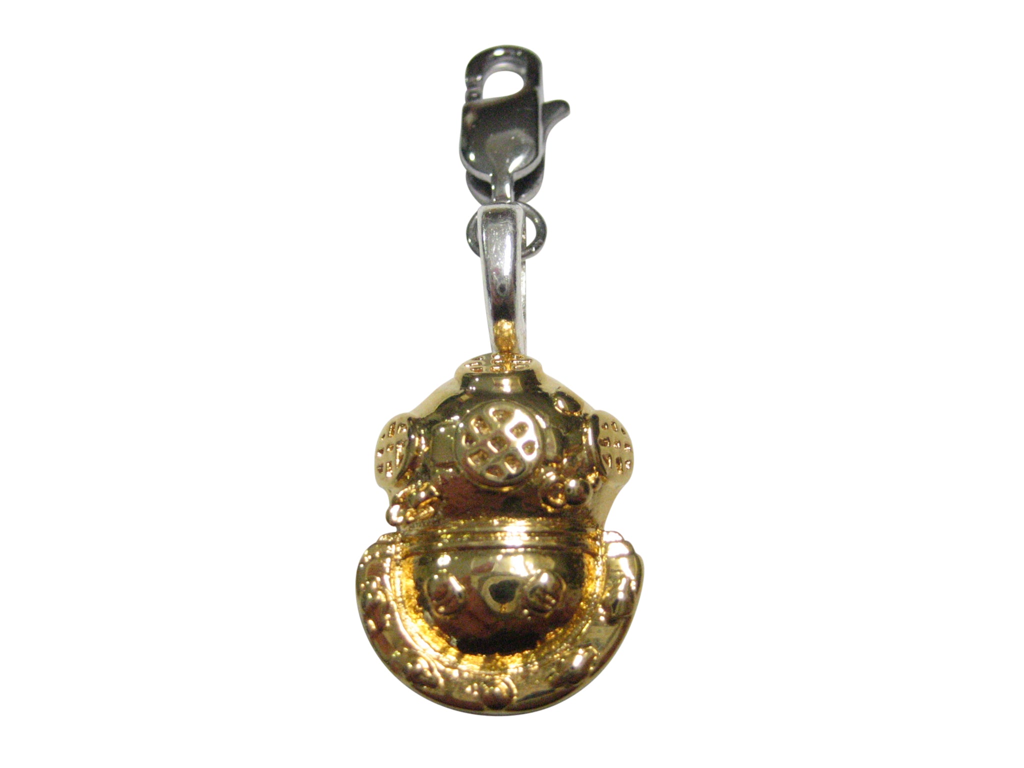 Gold Toned Divers Diving Helmet Pendant Zipper Pull Charm
