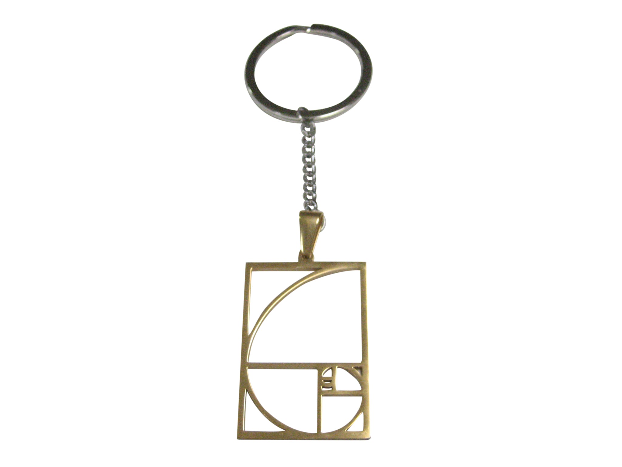 Gold Toned Geometric Fibonacci Sequence Golden Spiral Pendant Keychain