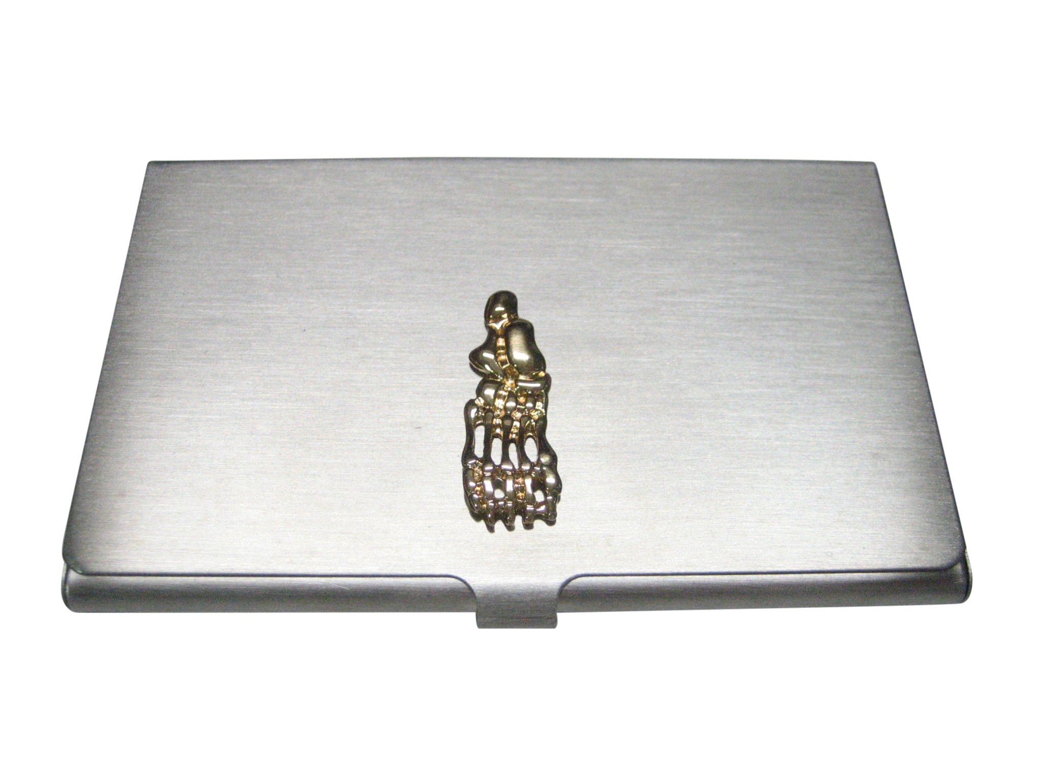 Gold Toned Medical Podiatrist Anatomical Foot Skeleton Business Card Holder