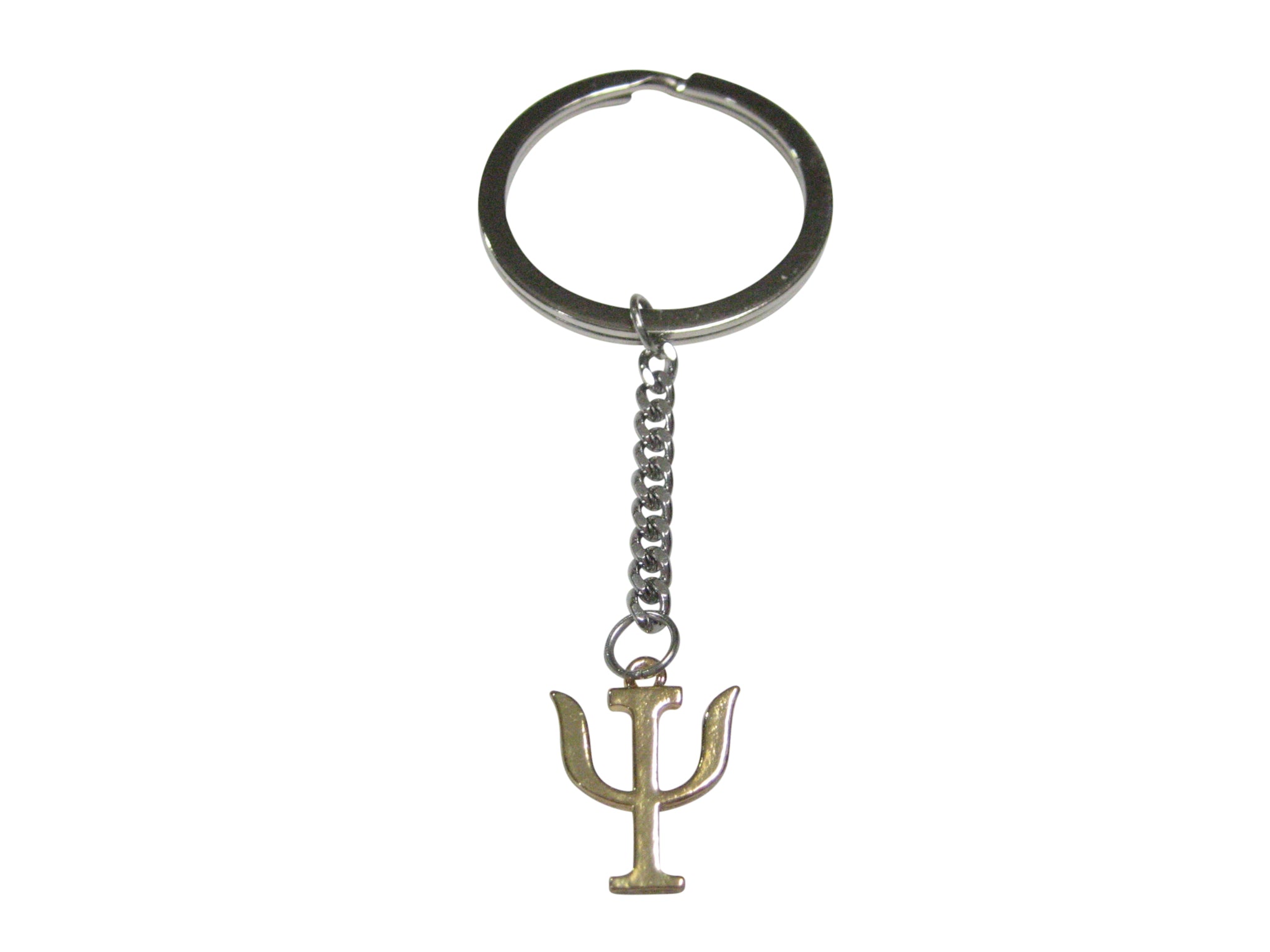 Gold Toned Psi Psychology Symbol Pendant Keychain