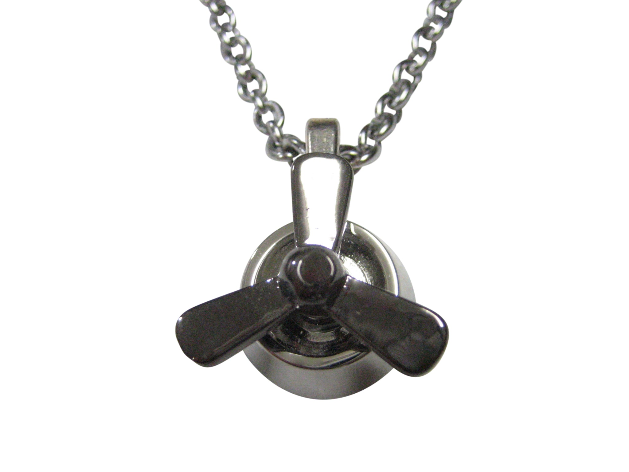 Gunmetal and Silver Toned Airplane Propellor Pendant Necklace