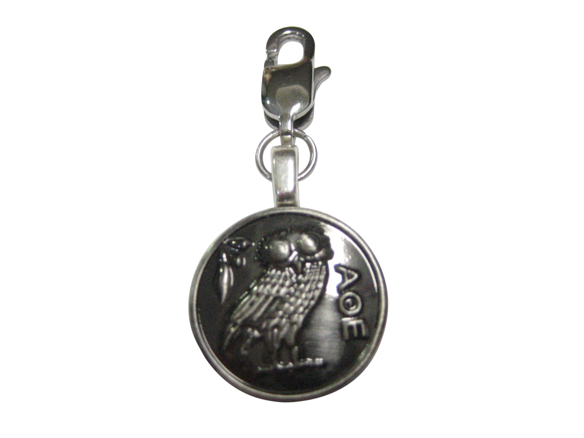 Gunmetal Toned Circular Owl of Athena Pendant Zipper Pull Charm