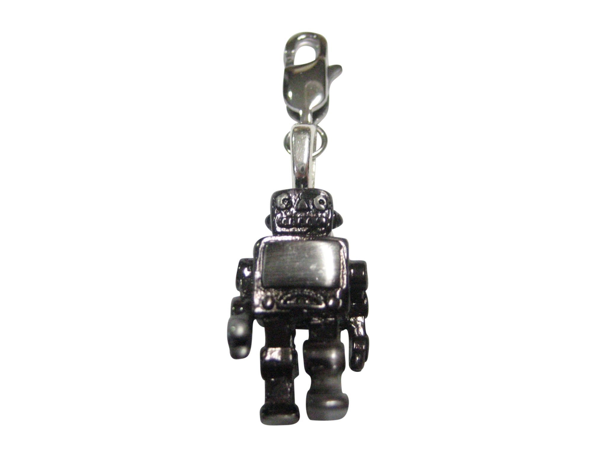 Gunmetal Toned Retro Robot Pendant Zipper Pull Charm