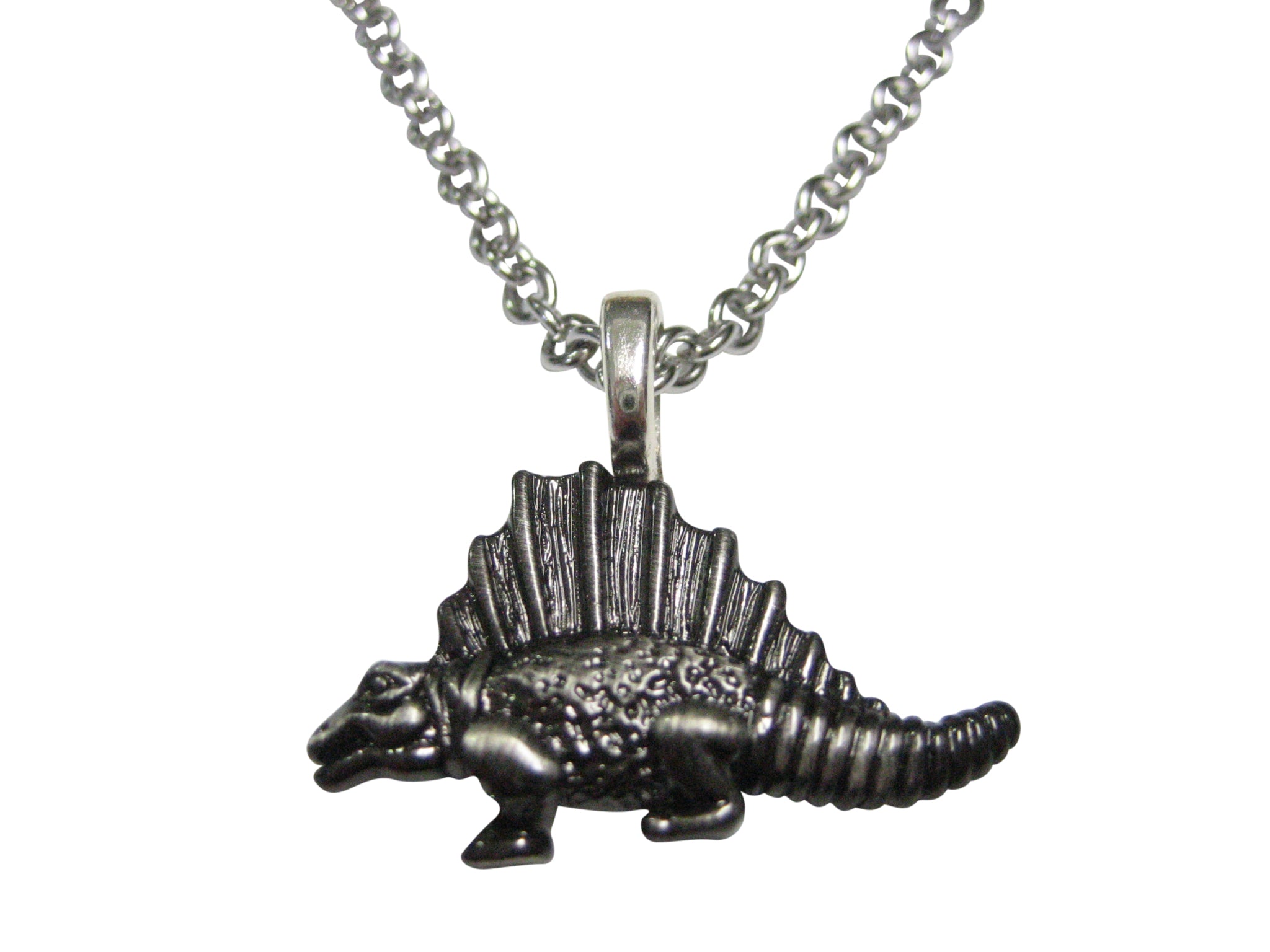 Gunmetal Toned Textured Dinosaur Pendant Necklace