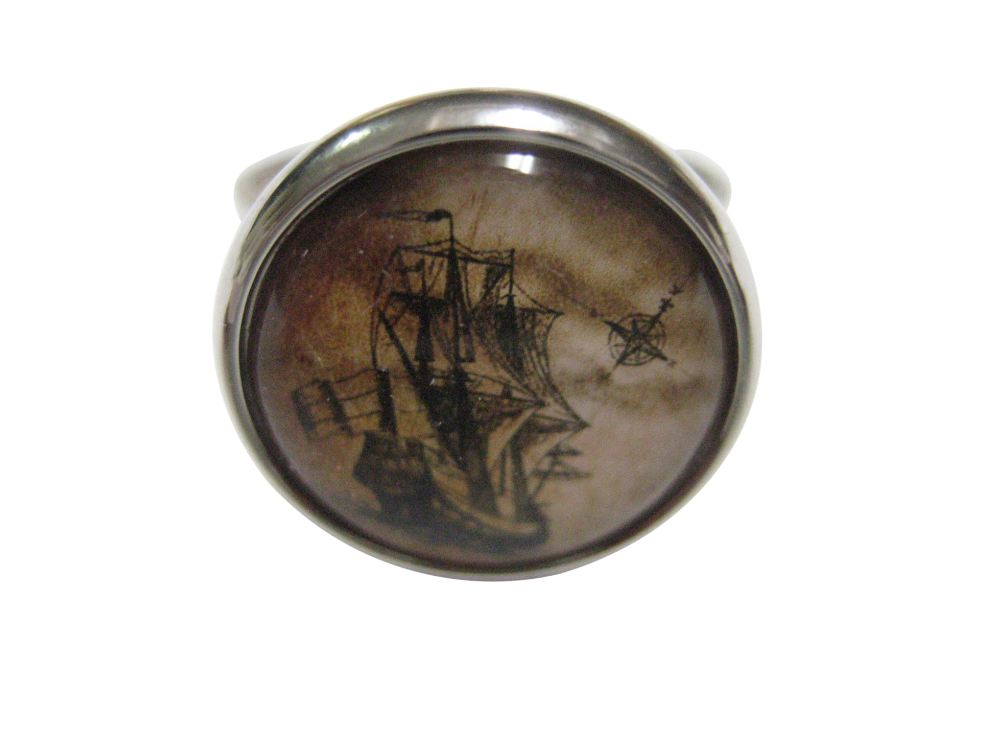 Nautical Old Ship Circular Adjustable Size Fashion Ring