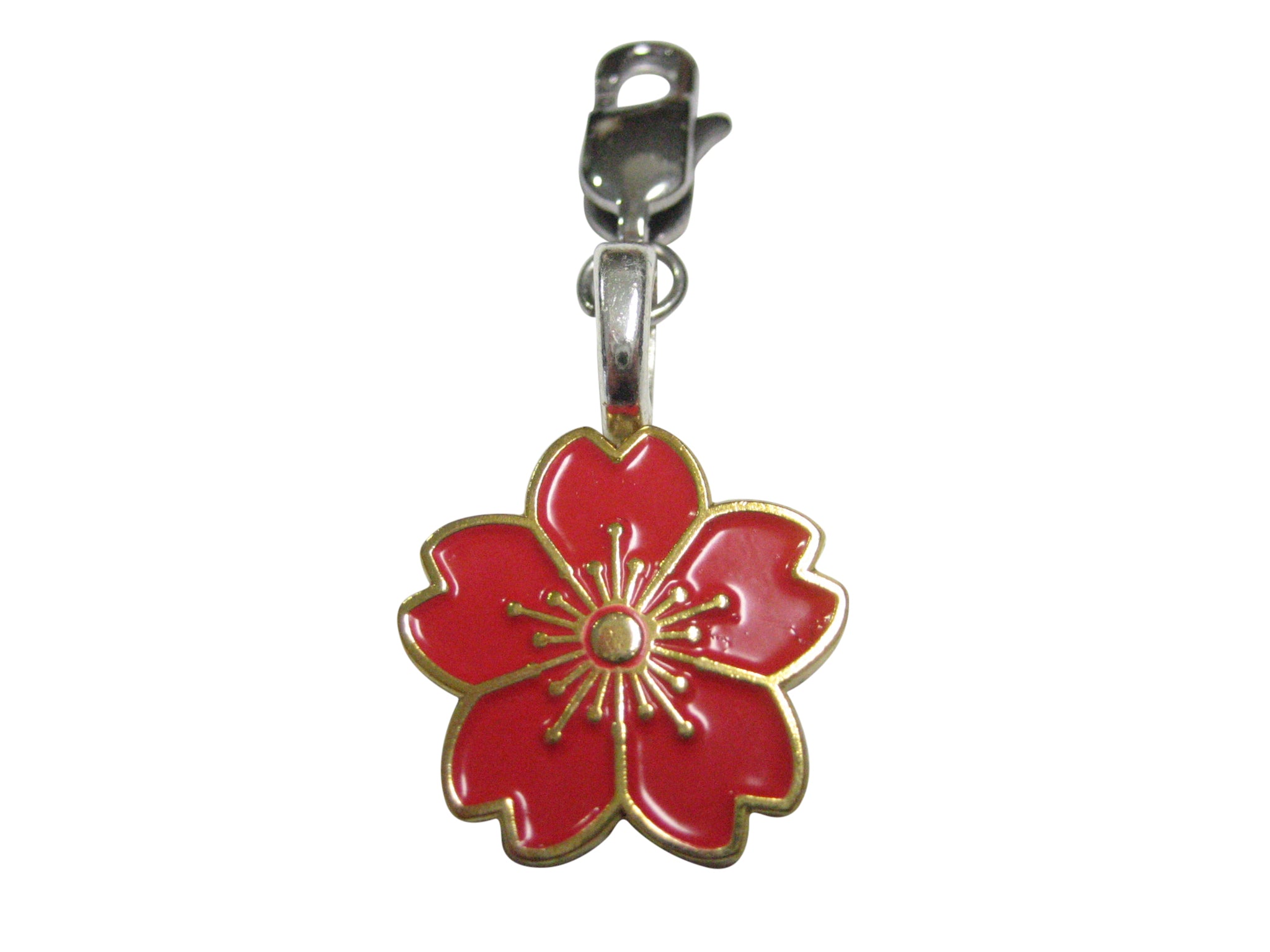 Red Cherry Blossom Flower Pendant Zipper Pull Charm