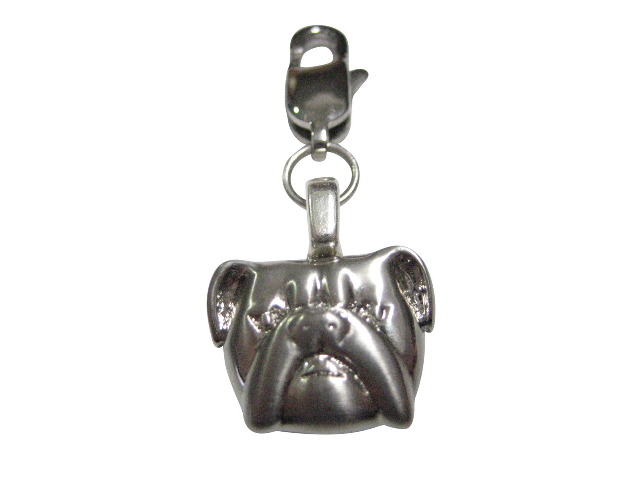 Silver Toned Bulldog Head Pendant Zipper Pull Charm