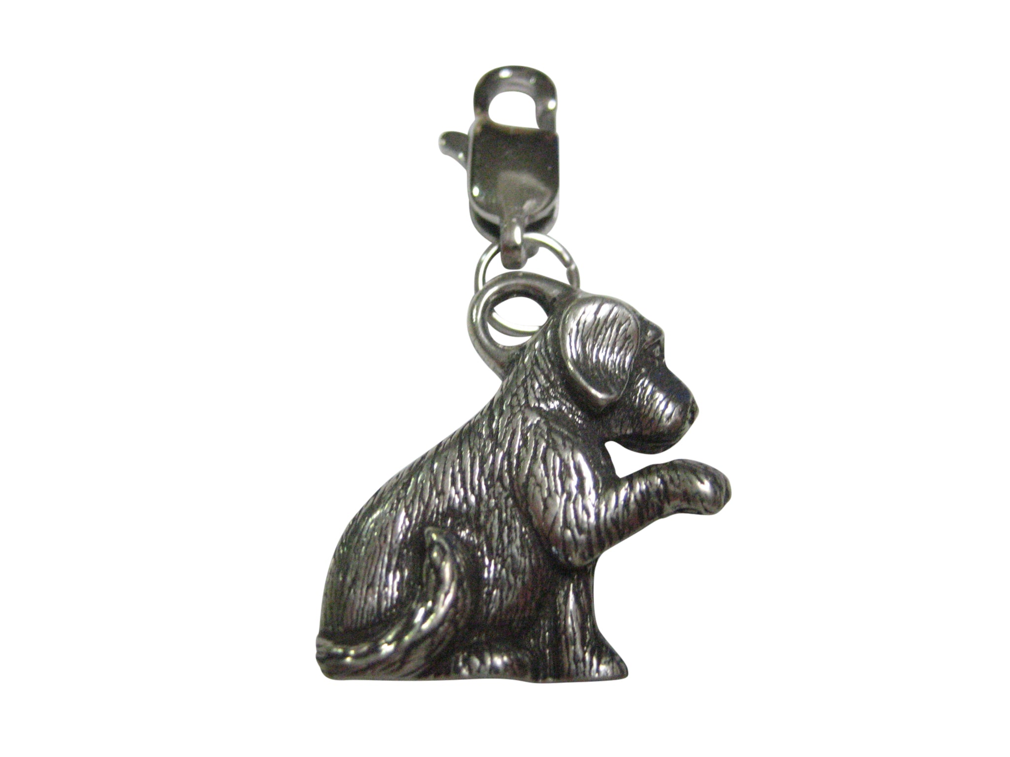 Silver Toned Dog With Paw Pendant Pendant Zipper Pull Charm