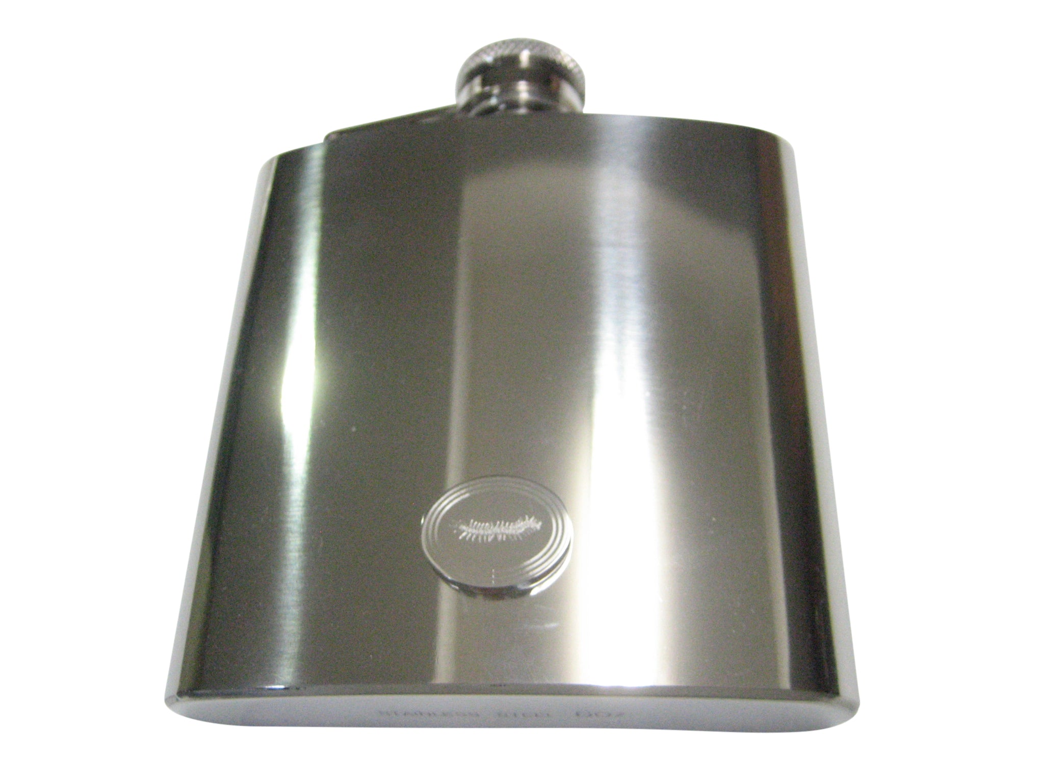 Silver Toned Etched Oval Centipede Bug Insect 6oz Flask