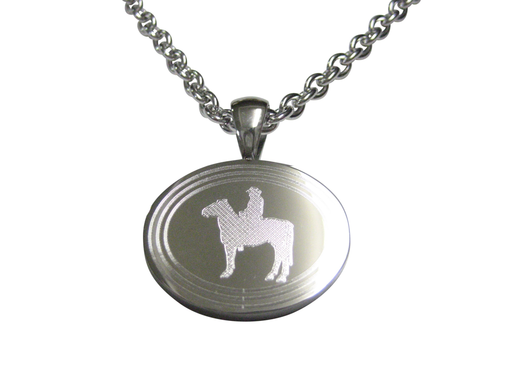Silver Toned Etched Oval Cowboy Pendant Necklace