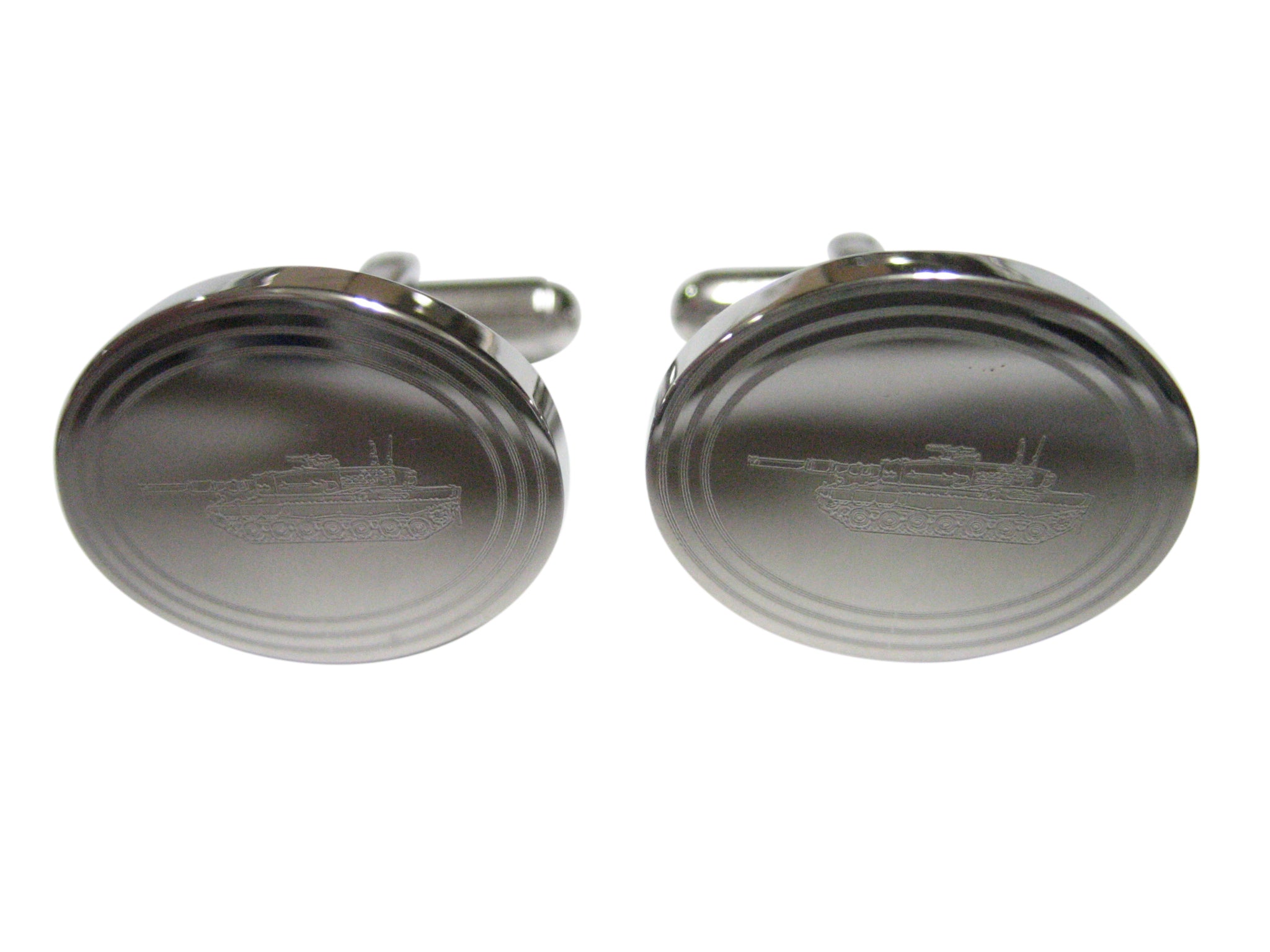 Silver Toned Etched Oval Detailed Tank Cufflinks