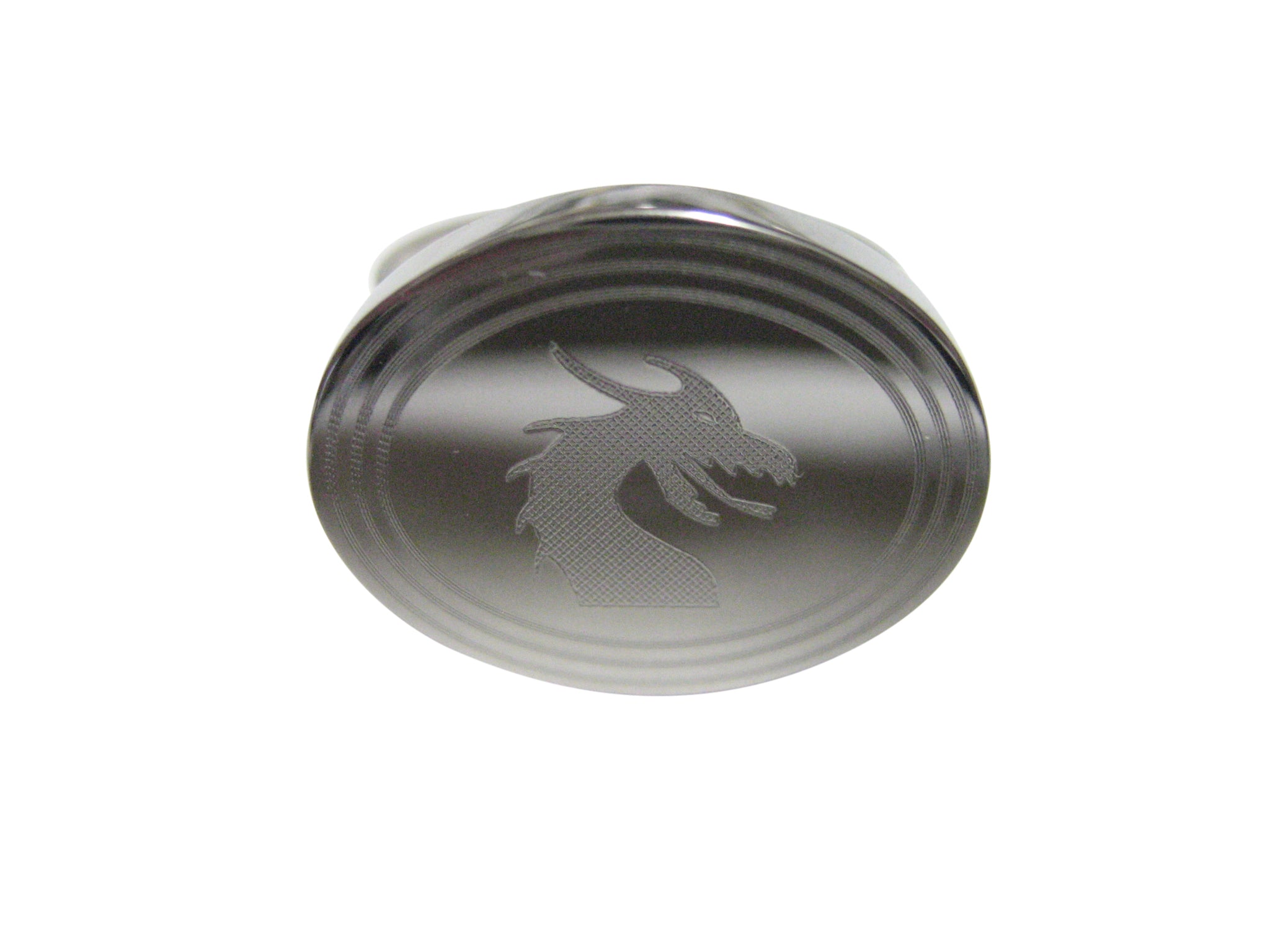 Silver Toned Etched Oval Dragon Head Adjustable Size Fashion Ring