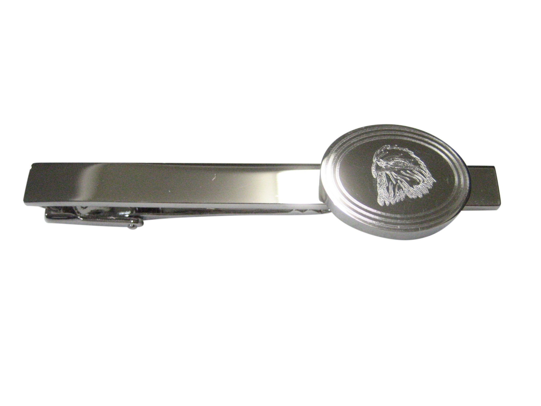 Silver Toned Etched Oval Eagle Bird Head Tie Clip