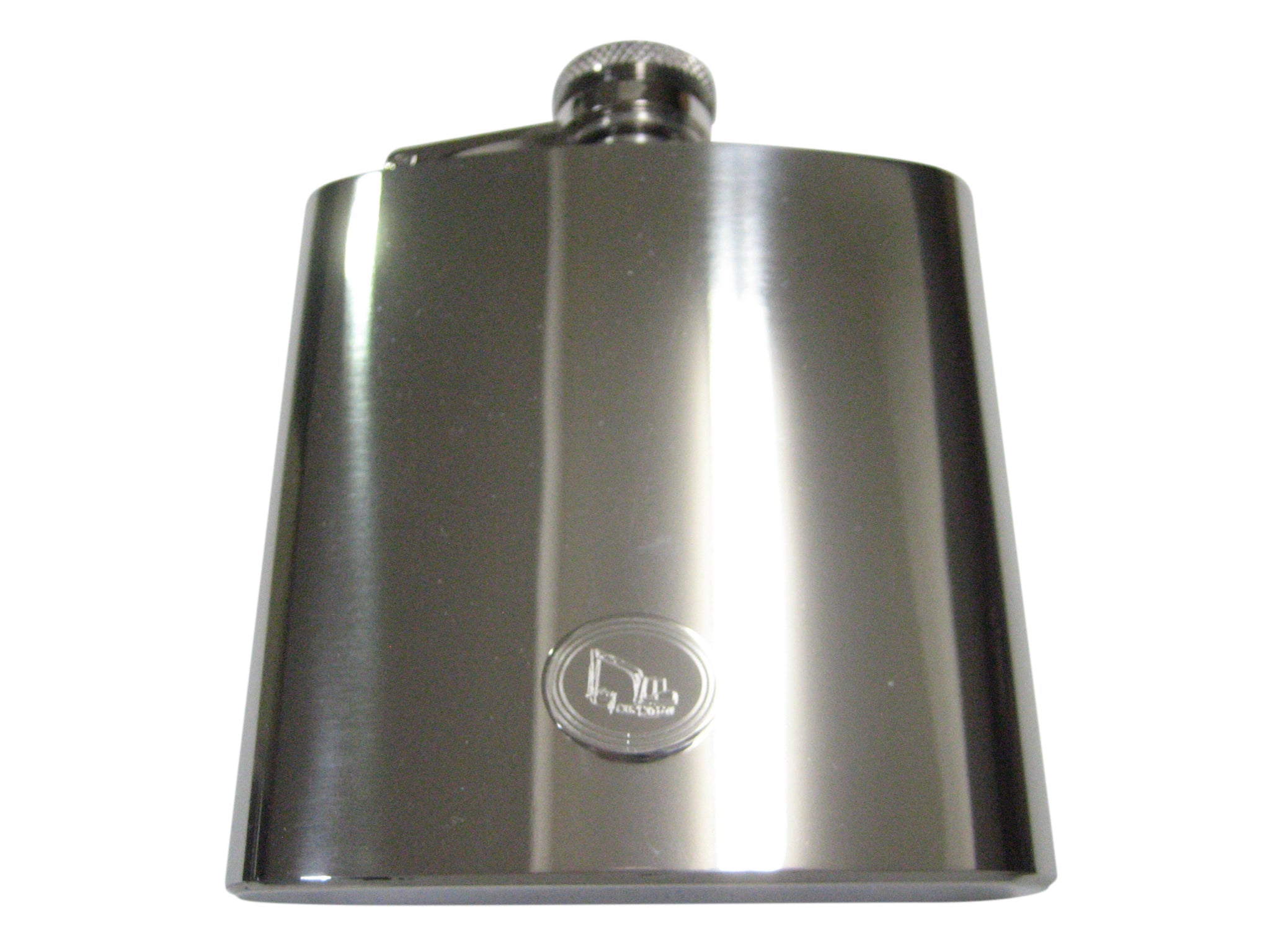 Silver Toned Etched Oval Excavator 6oz Flask