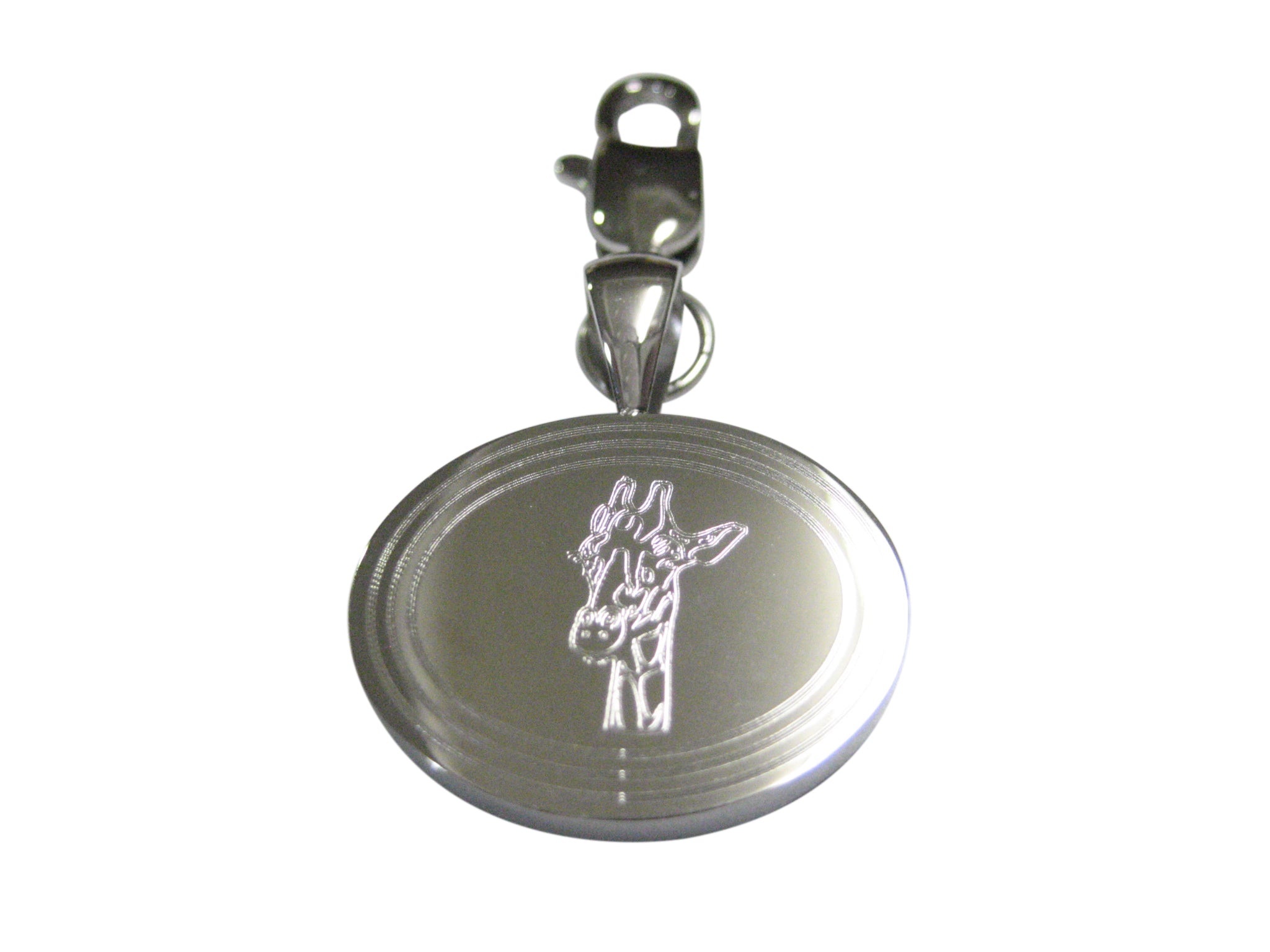 Silver Toned Etched Oval Giraffe Head Pendant Zipper Pull Charm