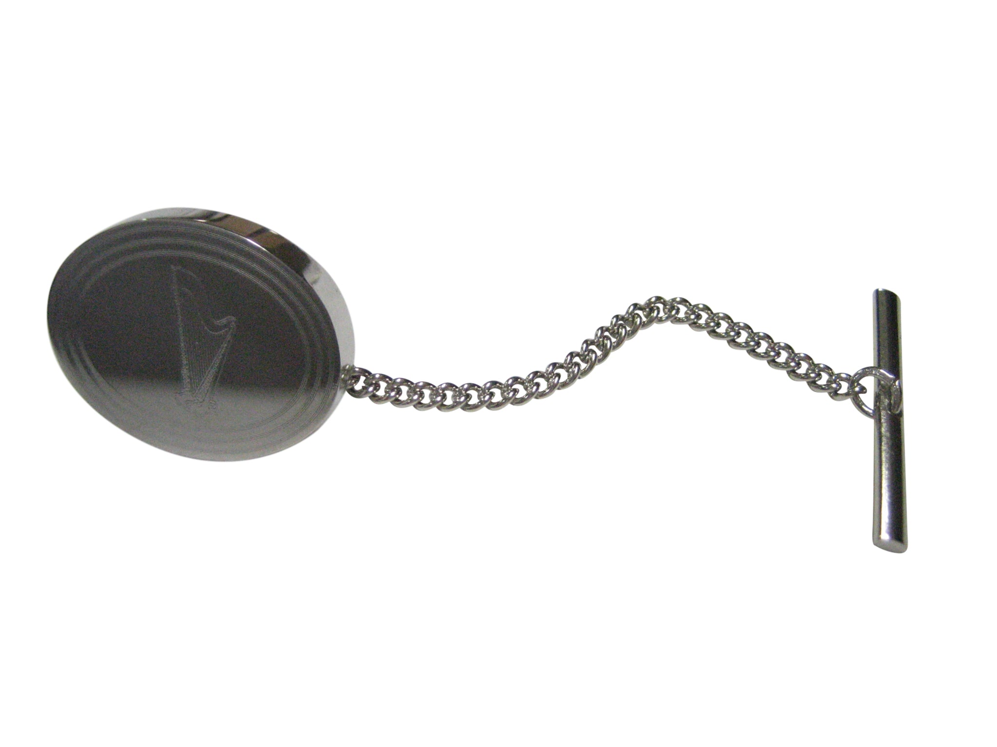 Silver Toned Etched Oval Harp Musical Instrument Tie Tack