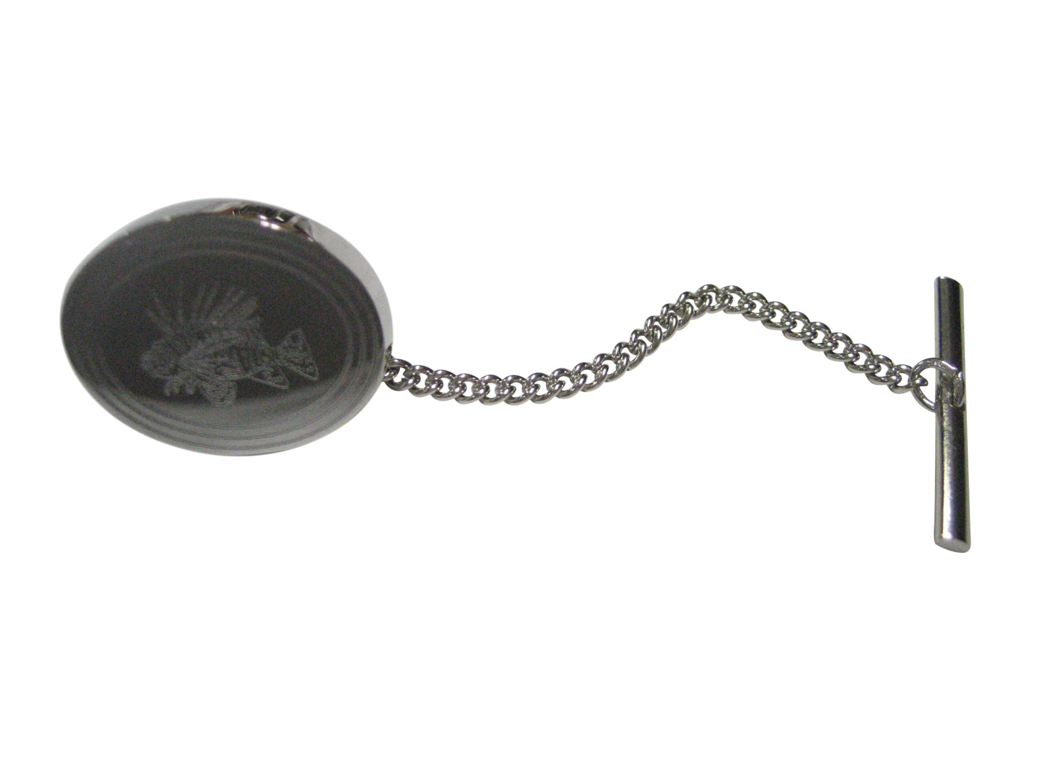 Silver Toned Etched Oval Lion Fish Tie Tack