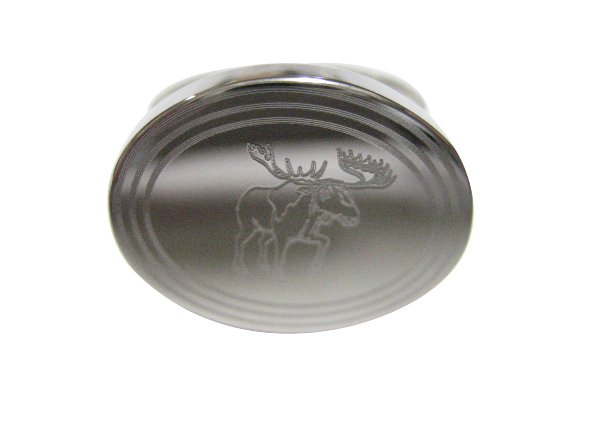 Silver Toned Etched Oval Moose Adjustable Size Fashion Ring