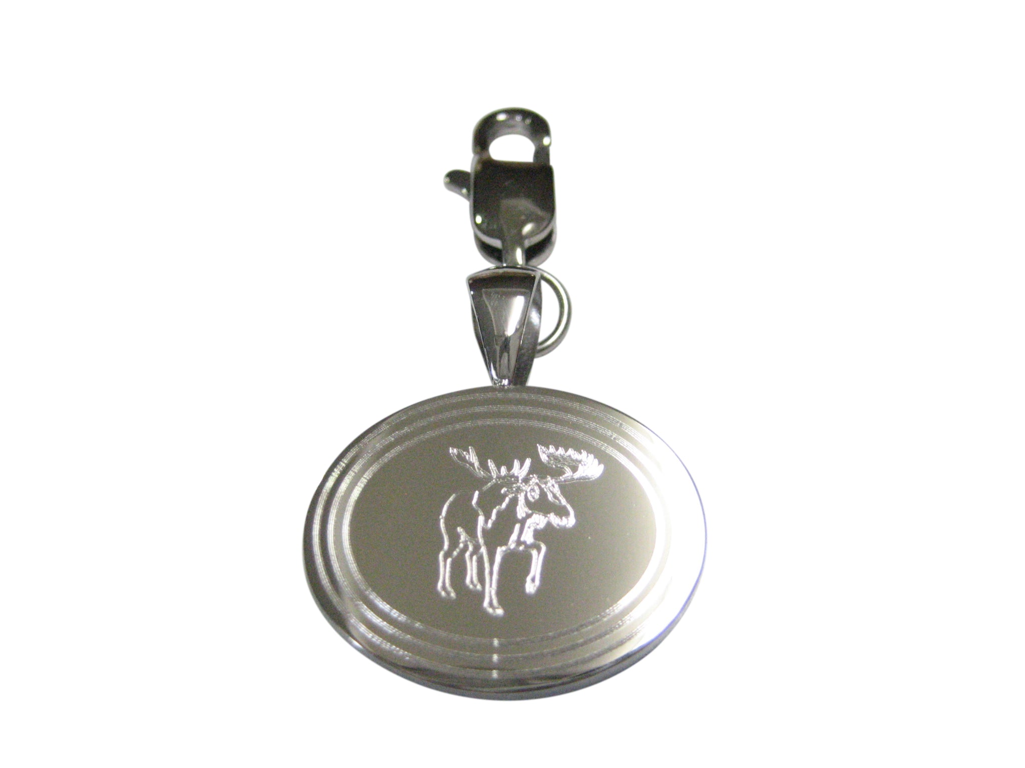 Silver Toned Etched Oval Moose Pendant Zipper Pull Charm