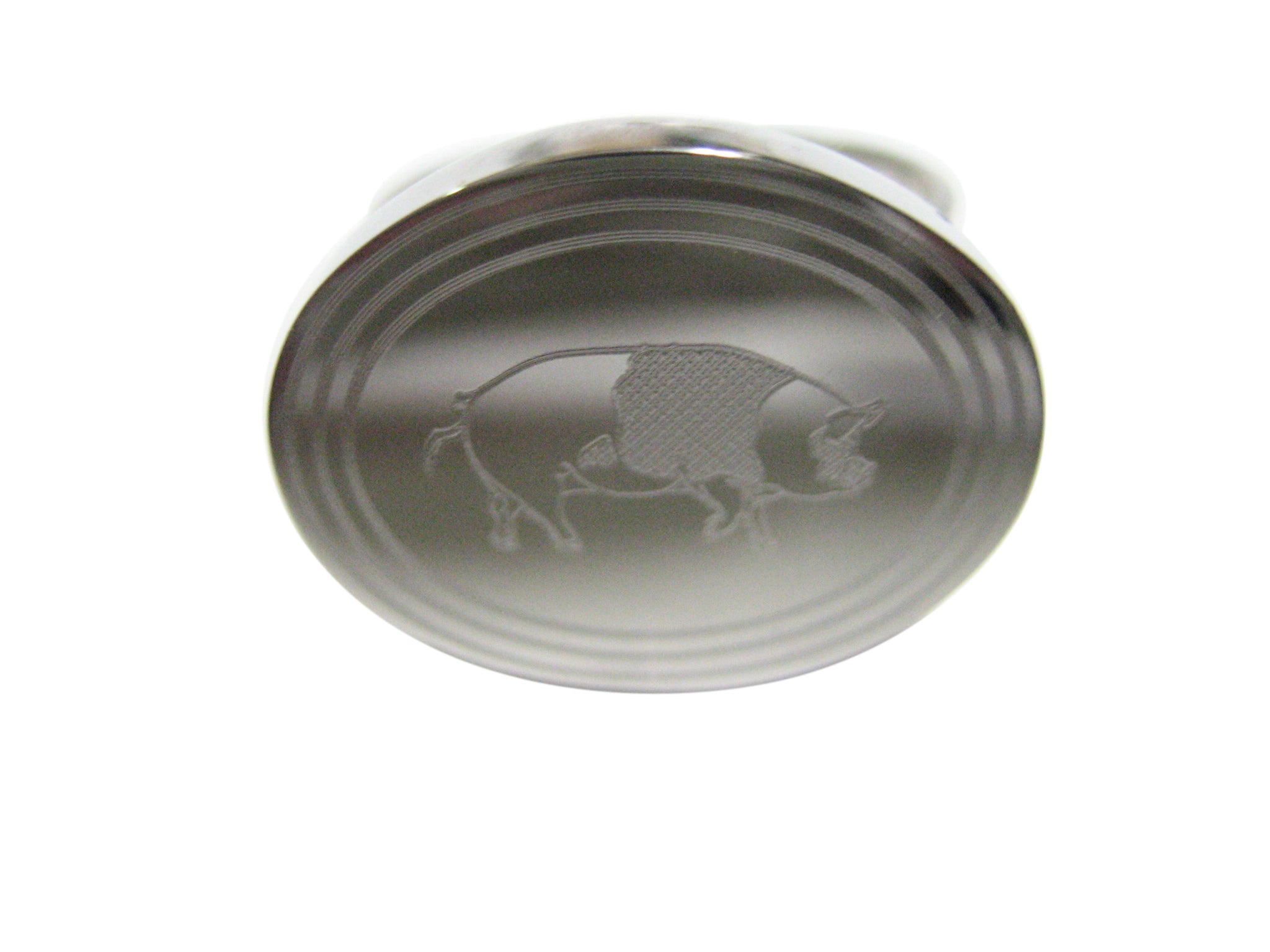Silver Toned Etched Oval Pig Adjustable Size Fashion Ring