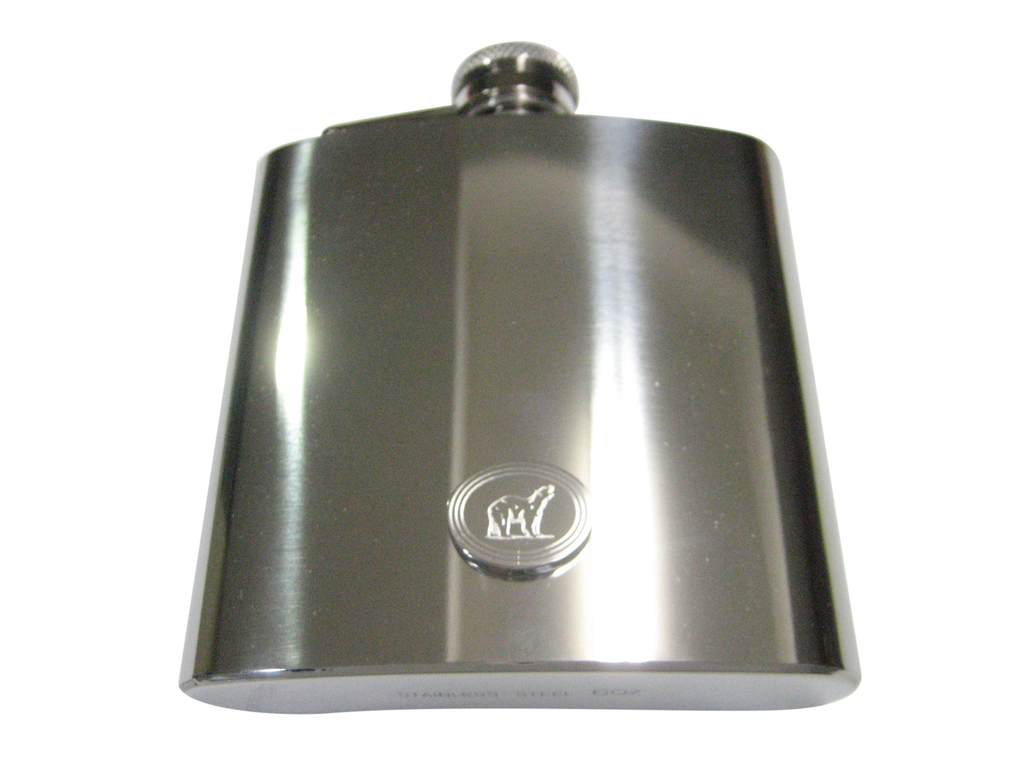 Silver Toned Etched Oval Polar Bear 6oz Flask