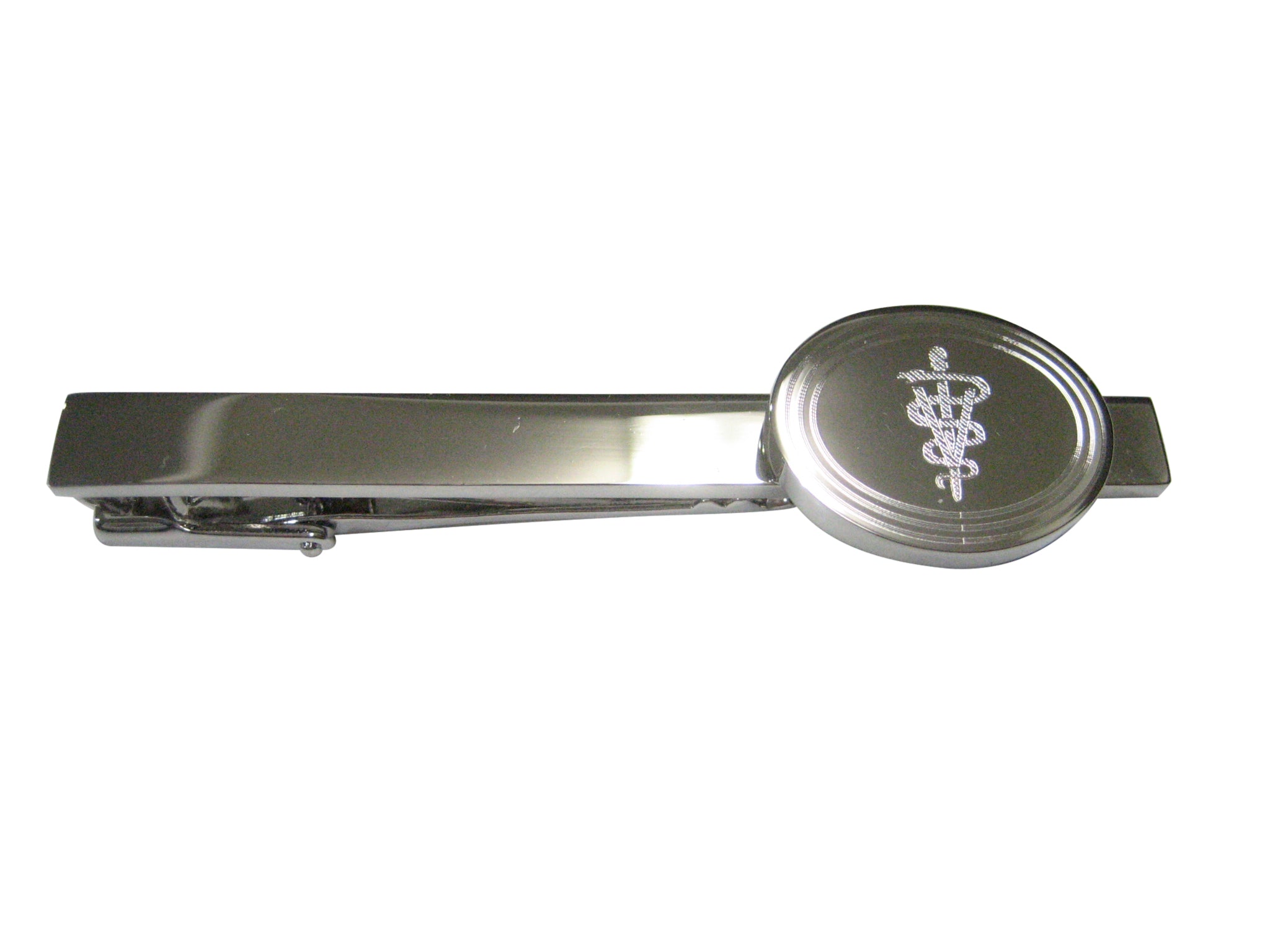 Silver Toned Etched Oval Veterinary Caduceus Symbol Tie Clip