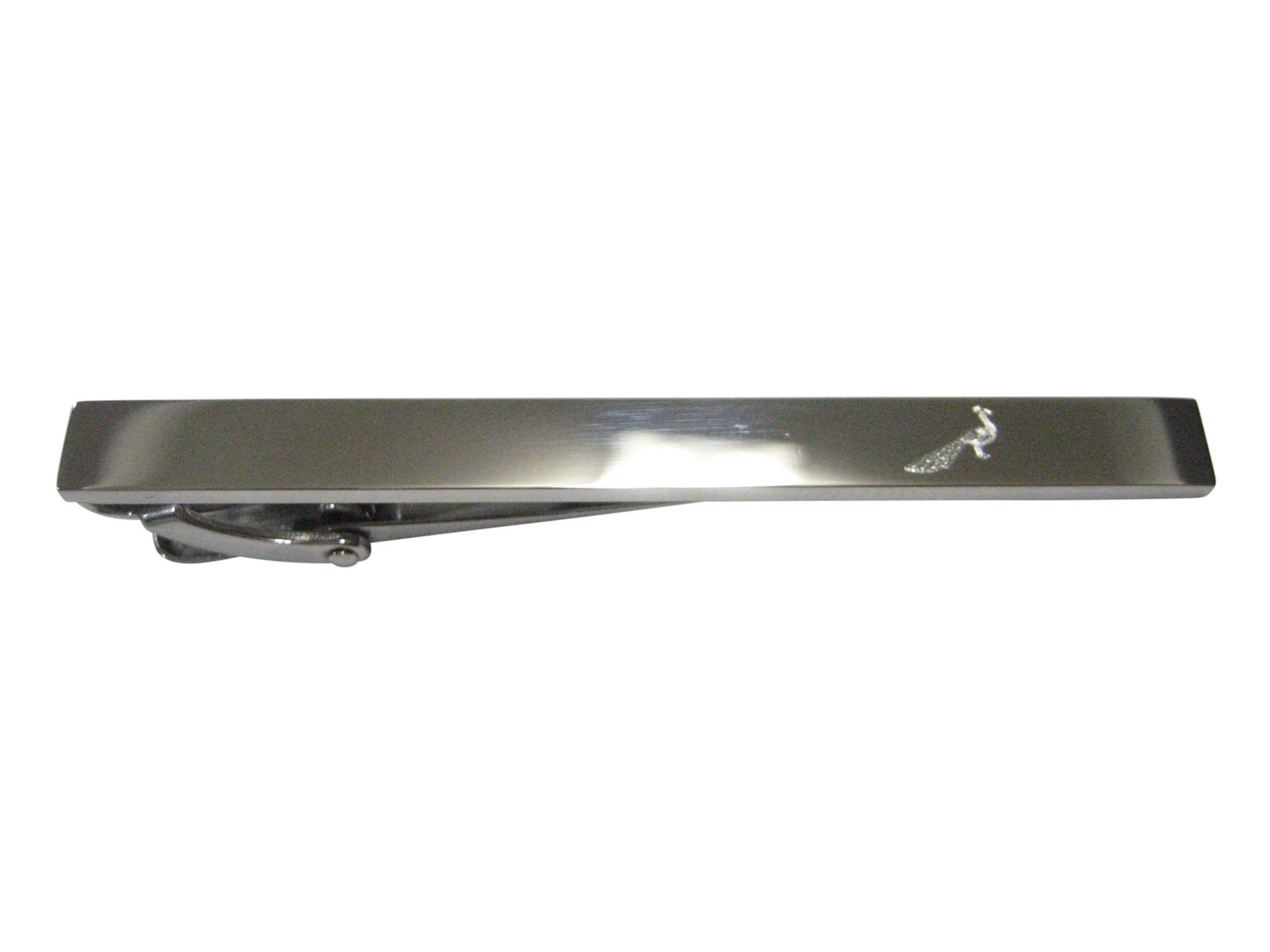 Silver Toned Etched Peacock Bird Tie Clip