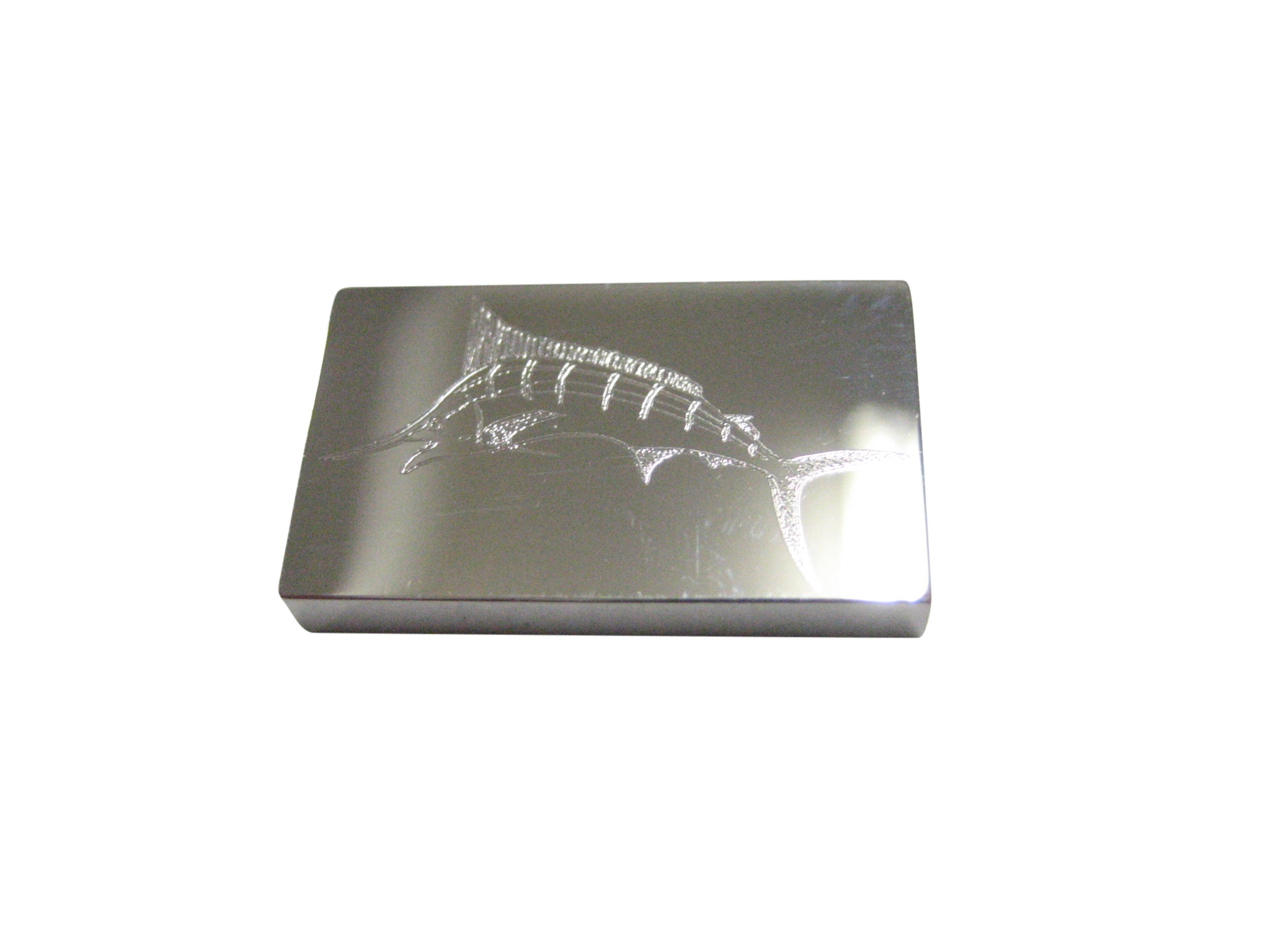 Silver Toned Etched Rectangular Etched Sailfish Marlin Fish Magnet