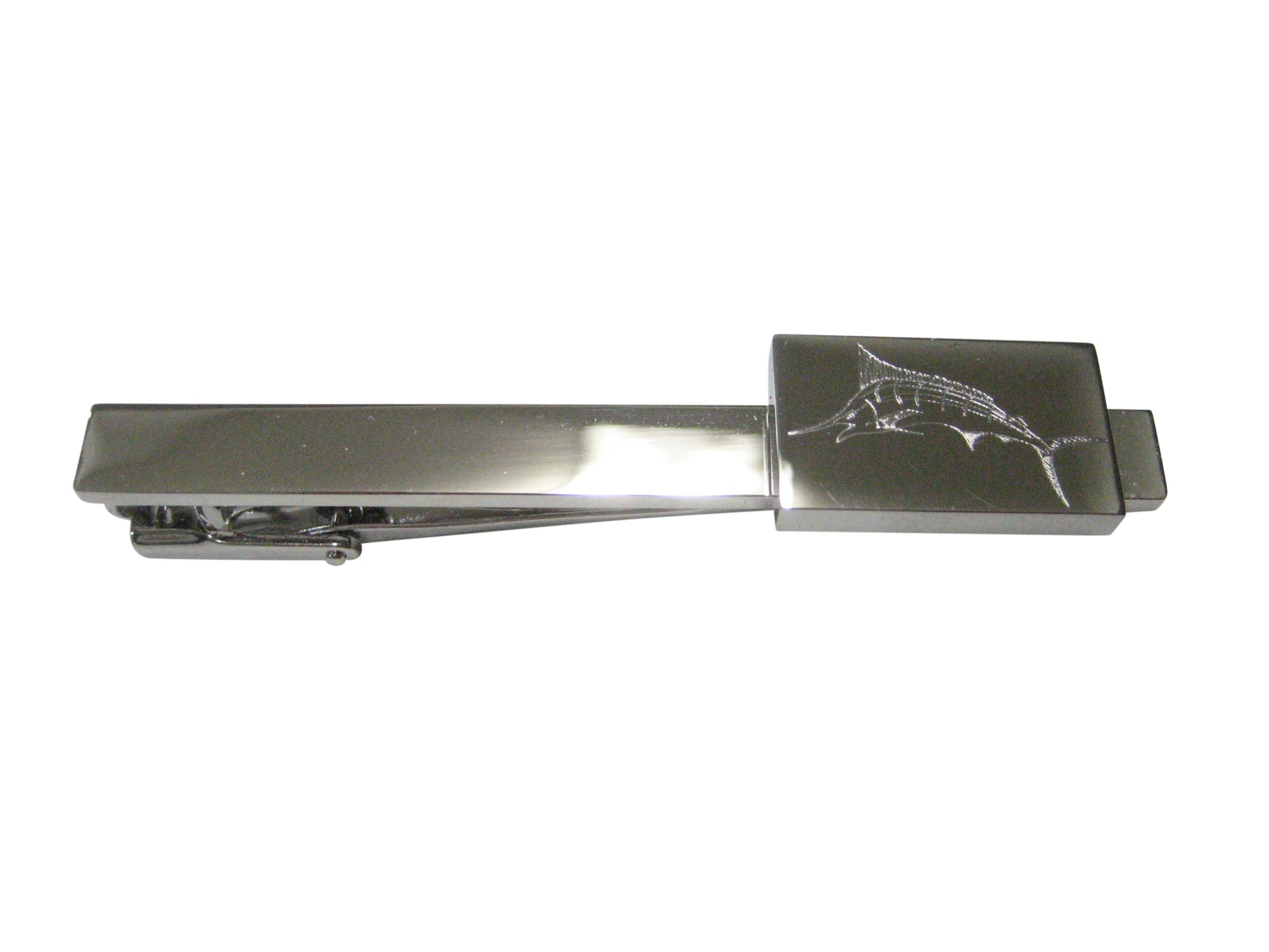 Silver Toned Etched Rectangular Etched Sailfish Marlin Fish Tie Clip