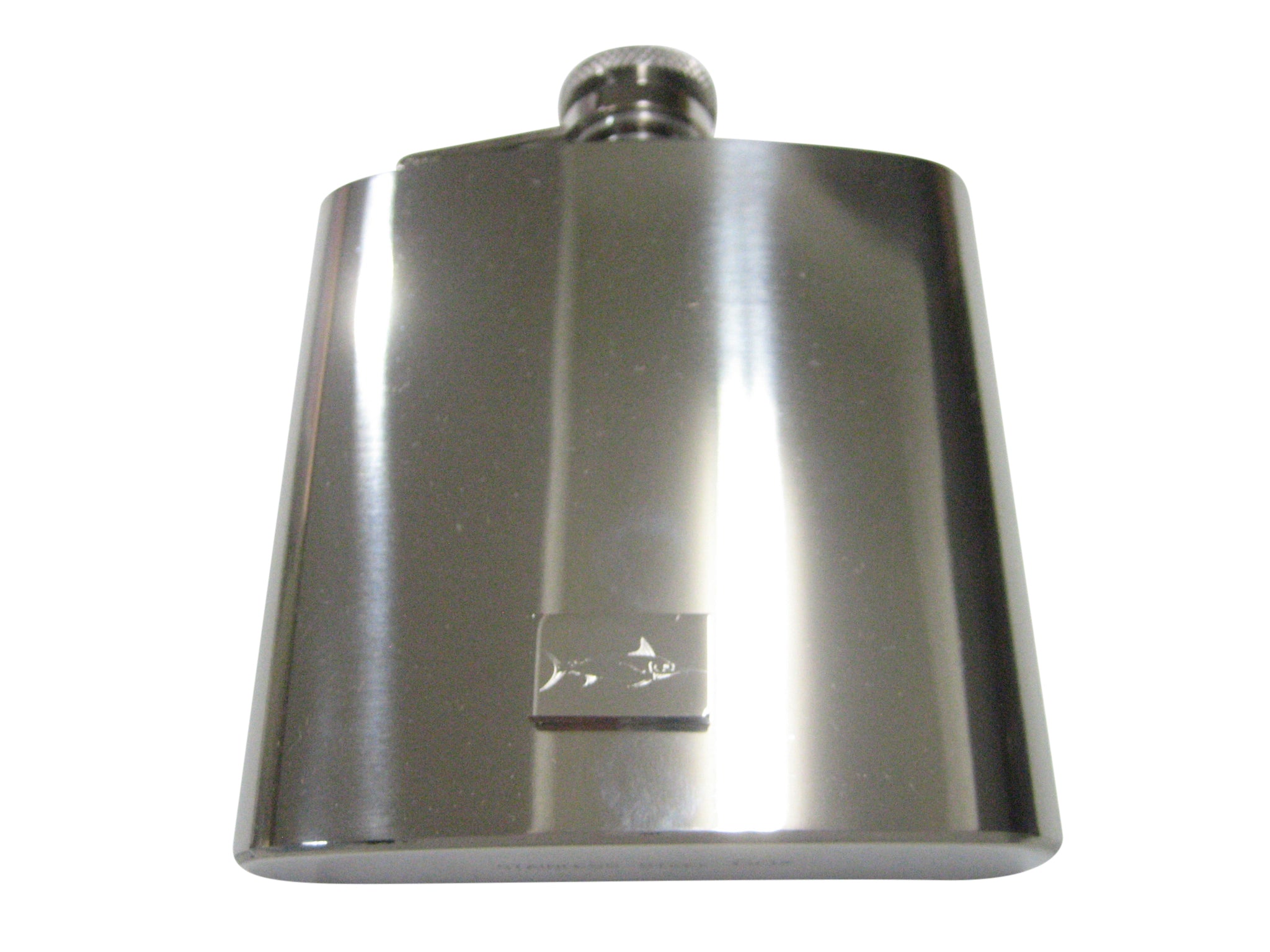 Silver Toned Etched Rectangular Marlin Sailfish 6oz Flask