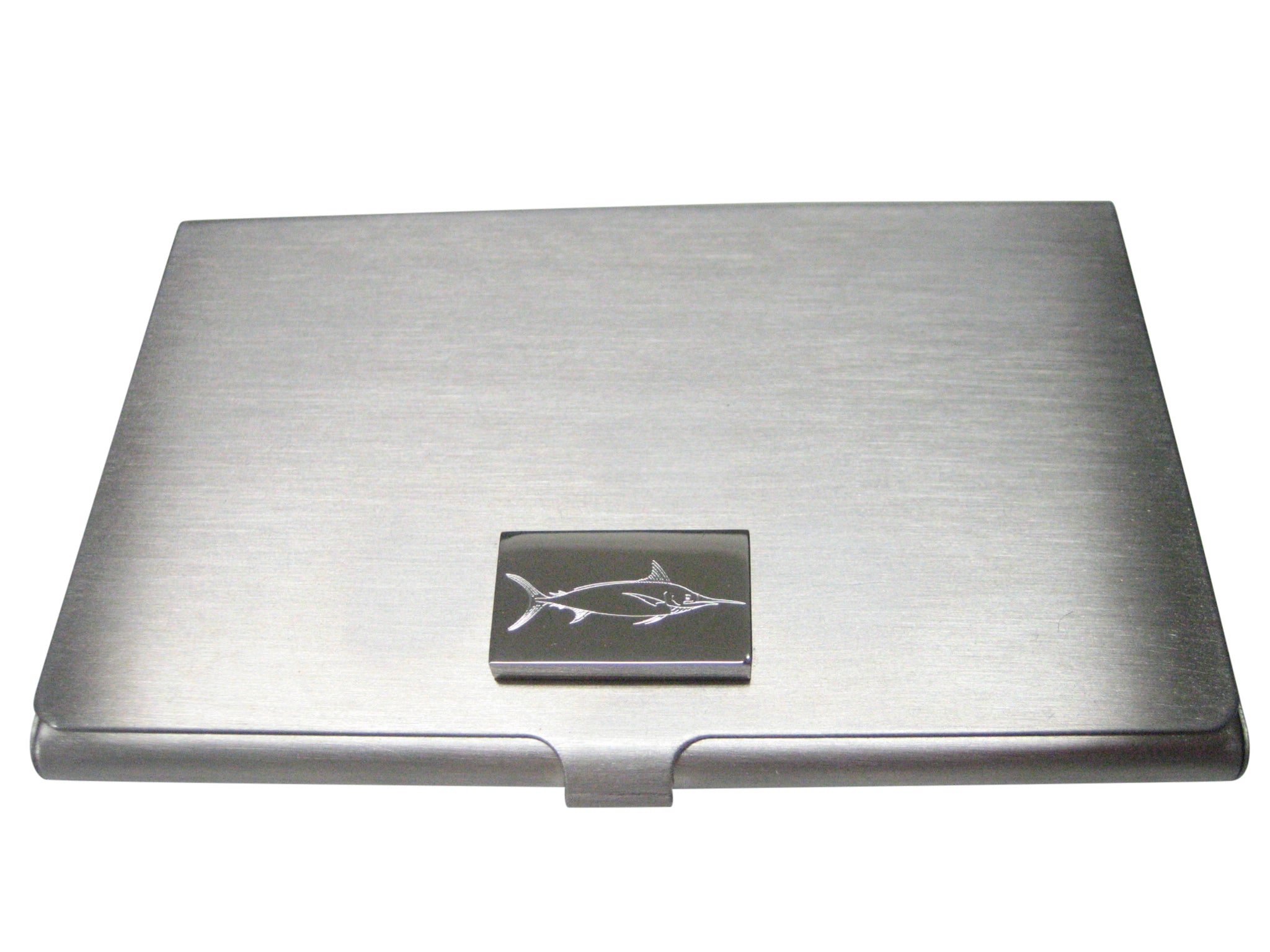 Silver Toned Etched Rectangular Marlin Sailfish Business Card Holder