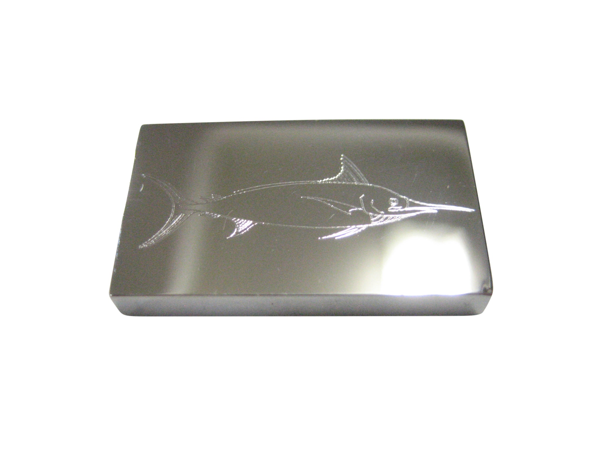 Silver Toned Etched Rectangular Marlin Sailfish Magnet