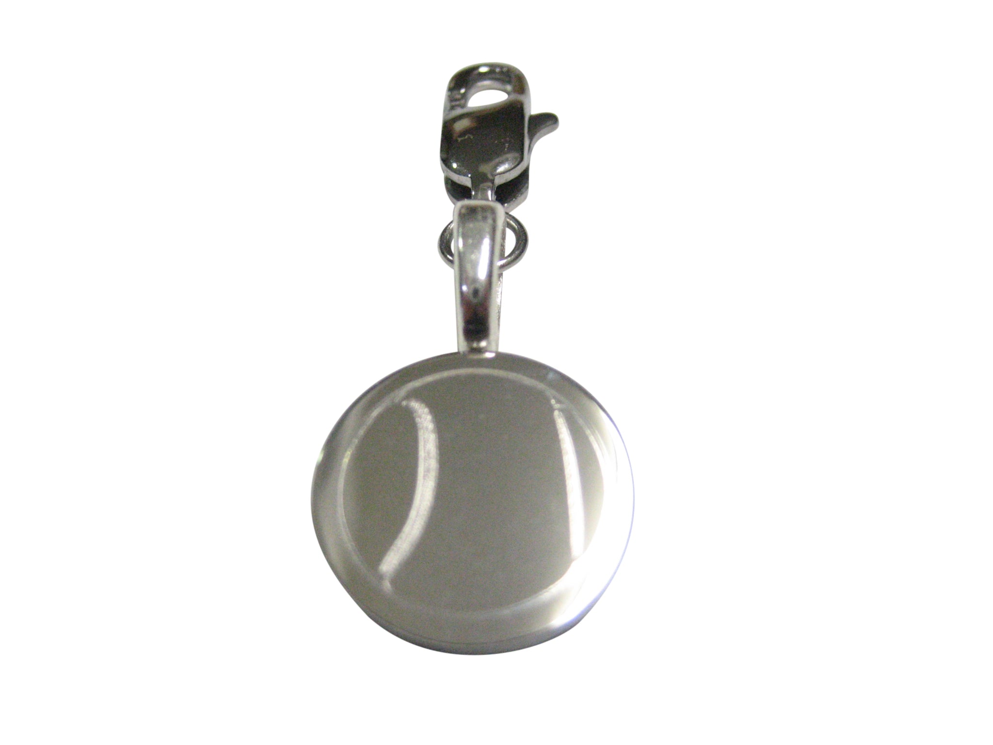 Silver Toned Etched Round Tennis Ball Pendant Zipper Pull Charm
