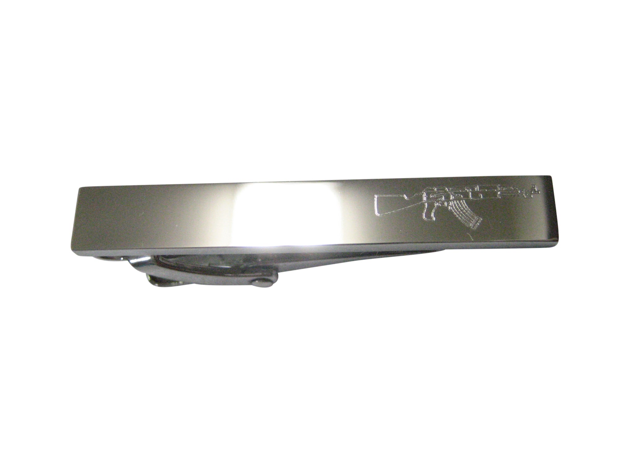 Silver Toned Etched Sleek AK47 Rifle V4 Skinny Tie Clip