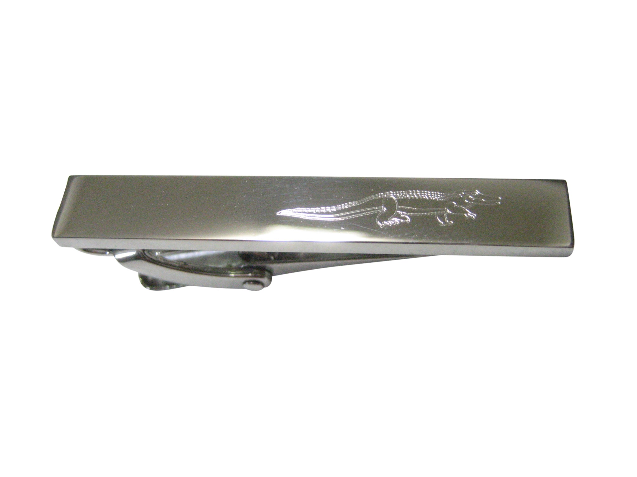 Silver Toned Etched Sleek Alligator Crocodile Skinny Tie Clip