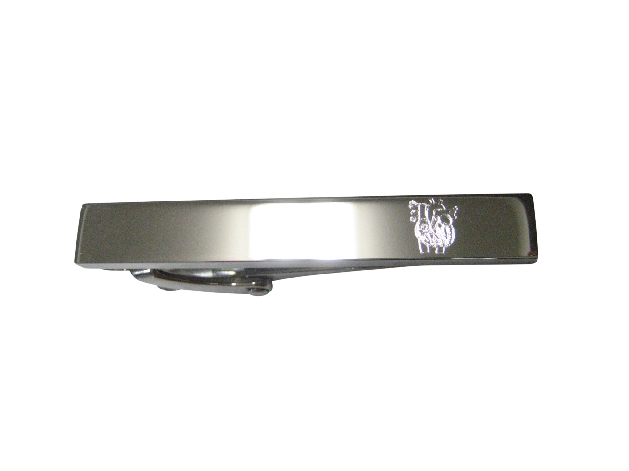 Silver Toned Etched Sleek Anatomical Heart Skinny Tie Clip