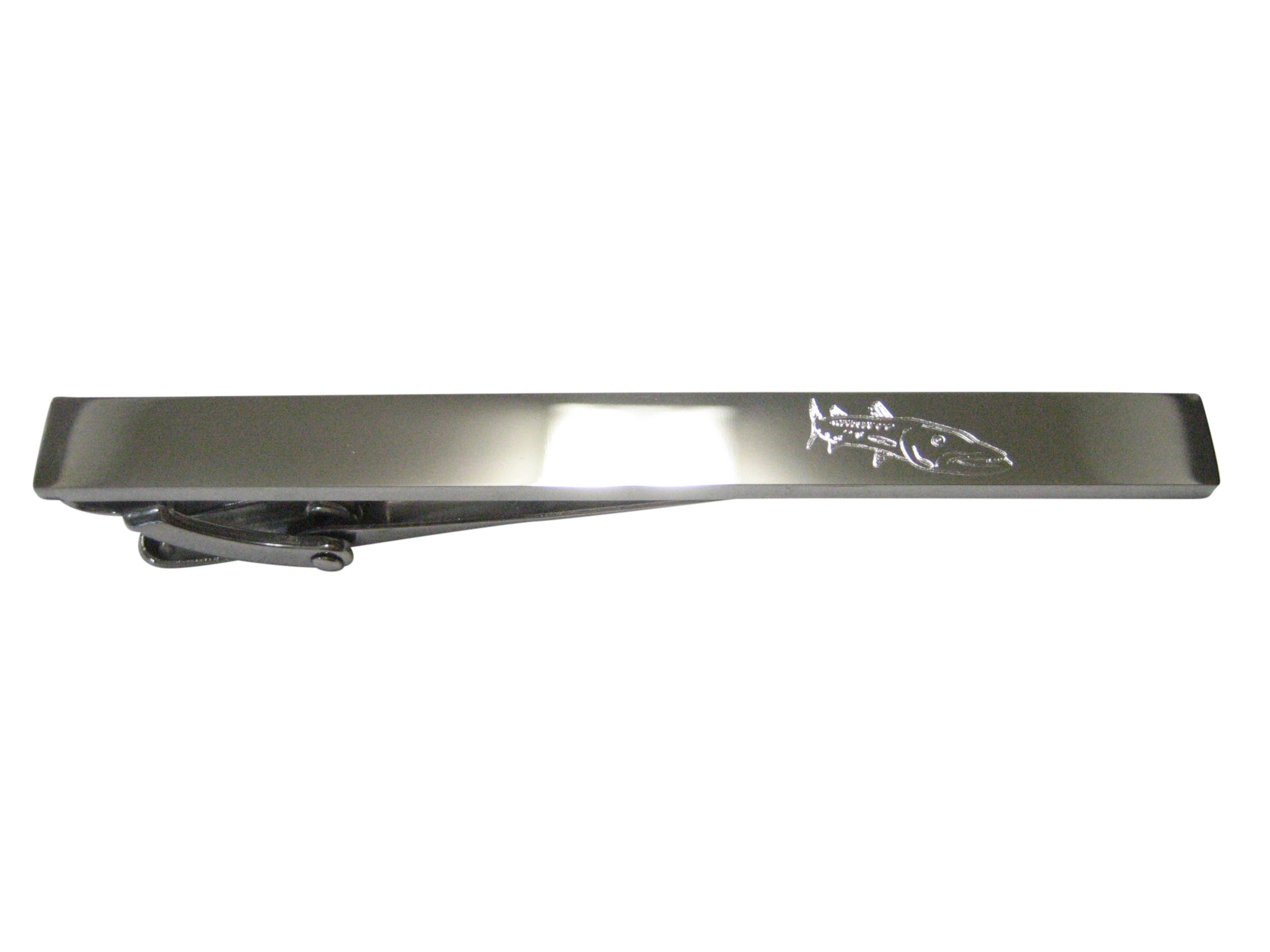 Silver Toned Etched Sleek Barracuda Fish Tie Clip