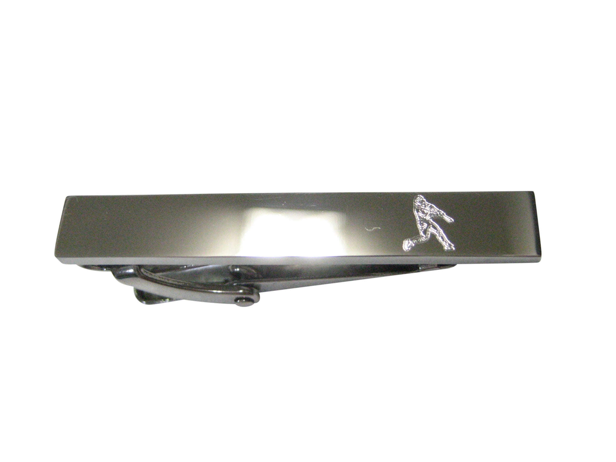 Silver Toned Etched Sleek Baseball Player Skinny Tie Clip