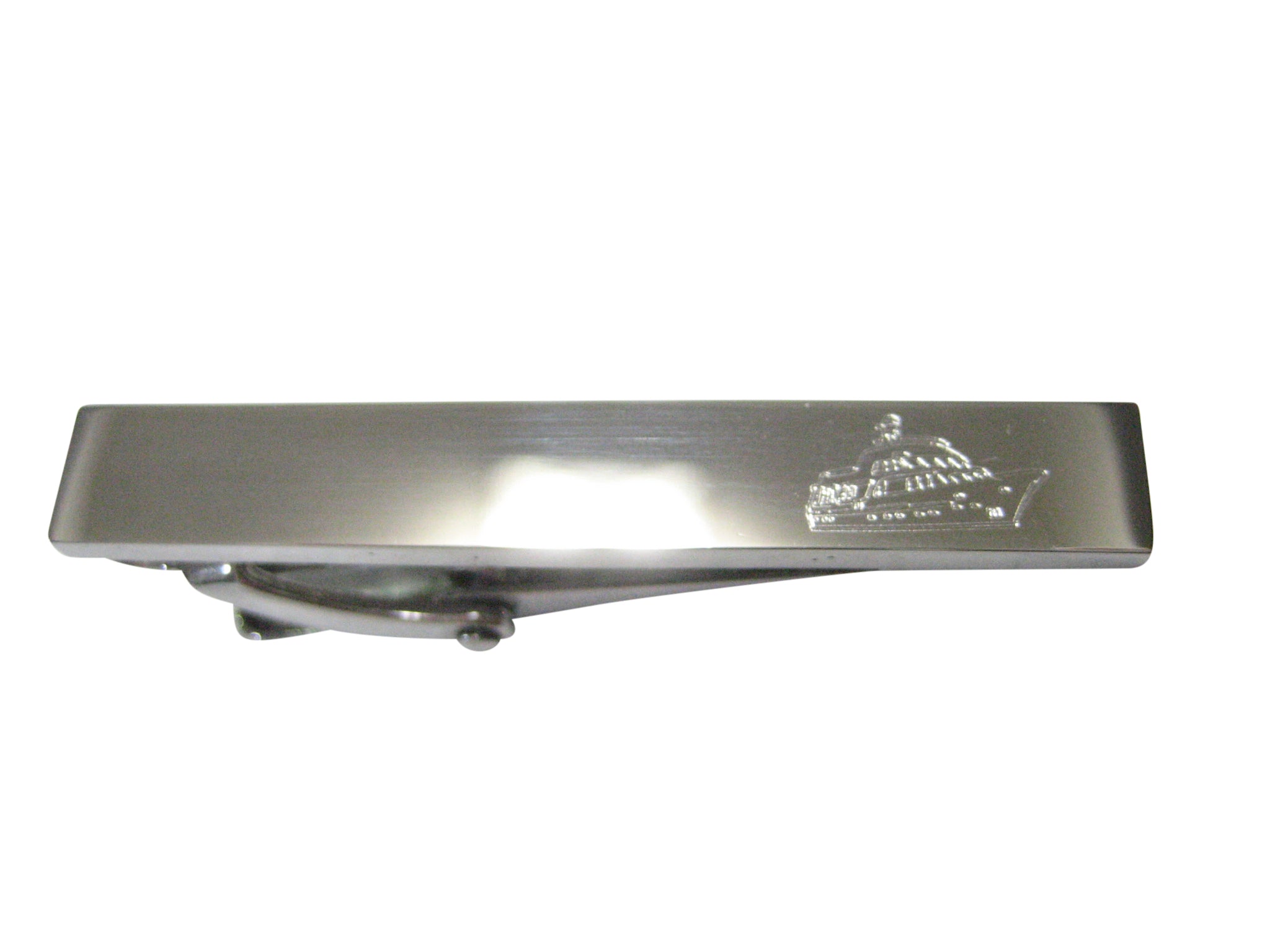 Silver Toned Etched Sleek Boat Skinny Tie Clip