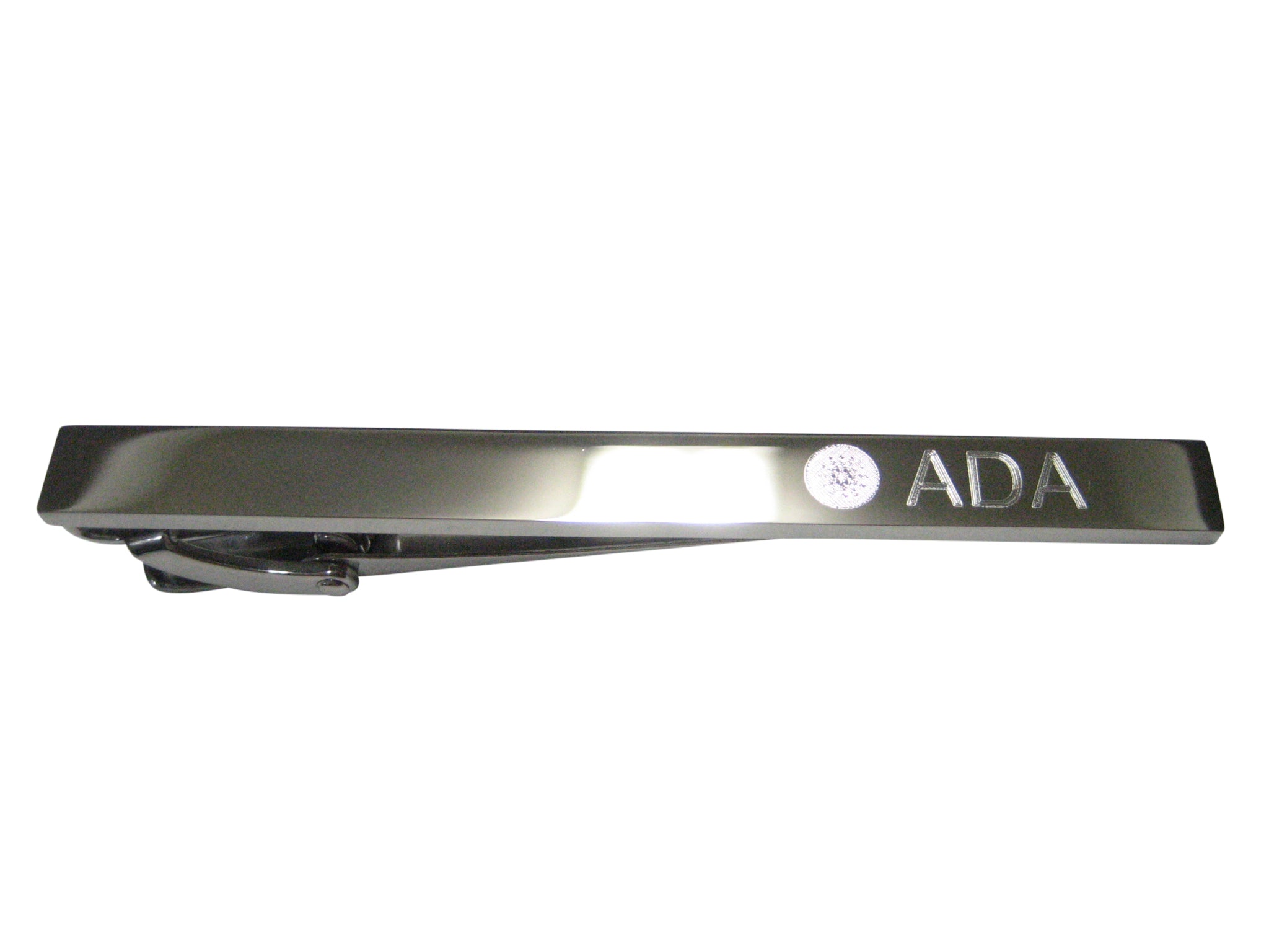 Silver Toned Etched Sleek Cardano Coin Cryptocurrency Blockchain Tie Clip