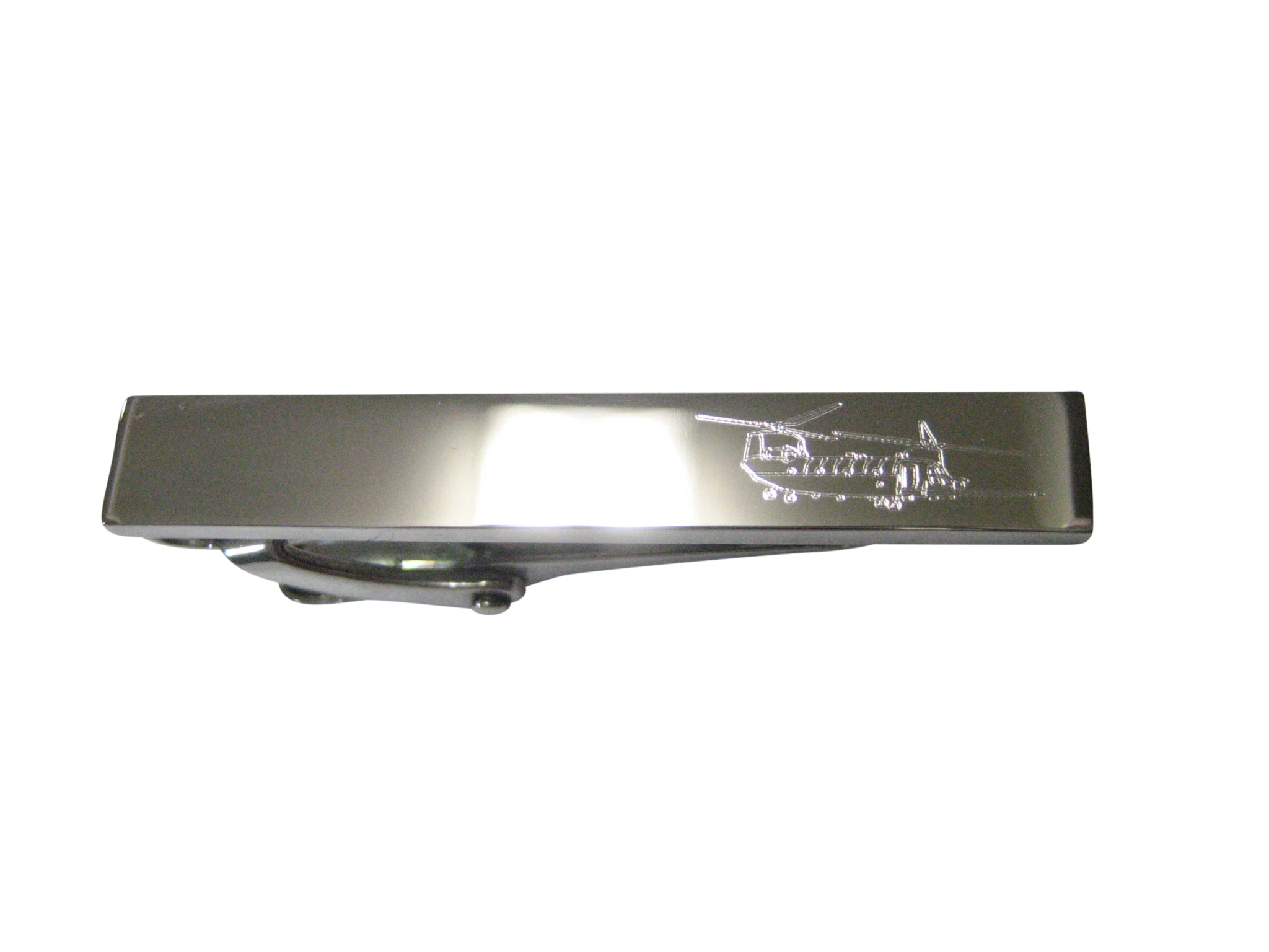 Silver Toned Etched Sleek Chinook Helicopter Skinny Tie Clip